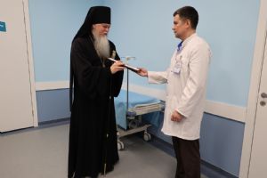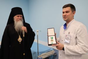 «Эту награду Святейший Патриарх Кирилл благословил передать для Вас, – произнес владыка в своем поздравительном слове. – Желаю, чтобы она была видимым знаком в укреплении Вашей духовной жизни и в том, чтобы Вы и дальше продолжали помогать людям бороться не только с коронавирусной инфекцией, но и со многими другими болезнями, которые есть в нашем многоспорном земном мире; чтобы Ваша помощь была всегда оказана вовремя и люди благословляли Бога в Вашем лице».
