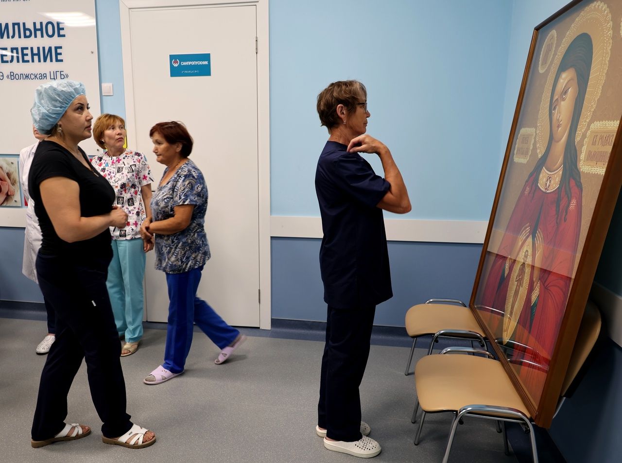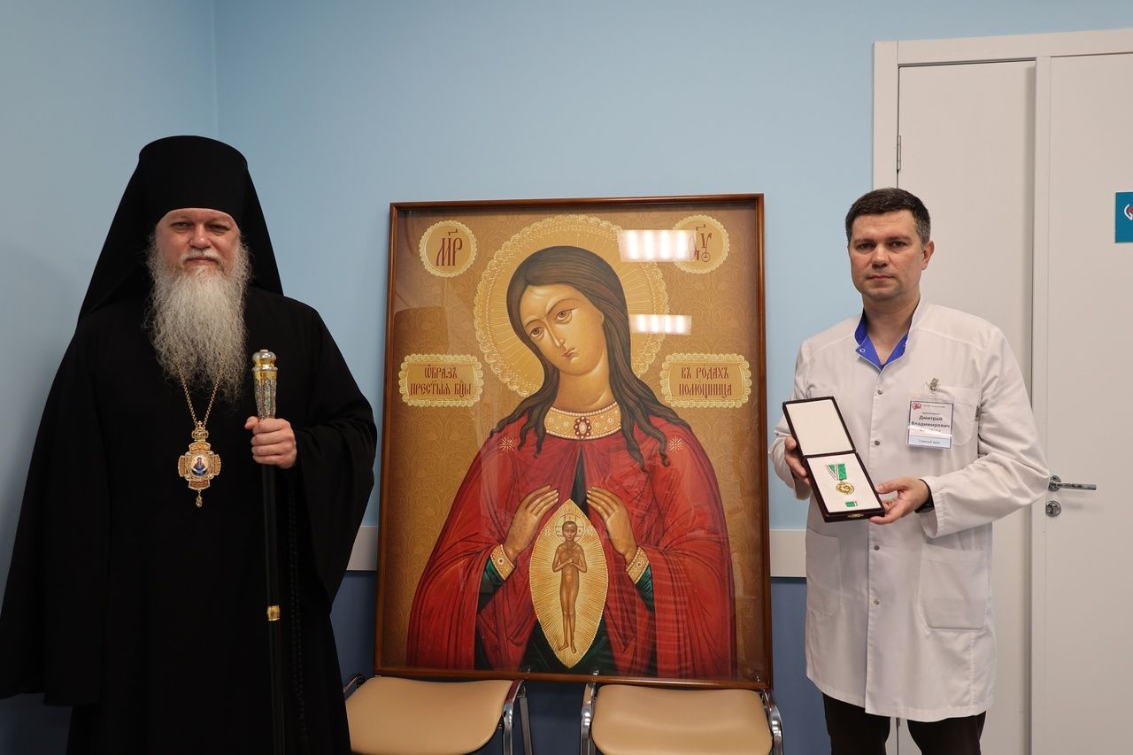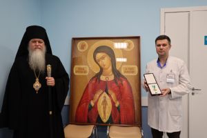 Епископ Феофан передал в дар родильному отделению г. Волжска икону Божией Матери «Помощница в родах»