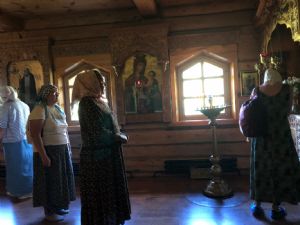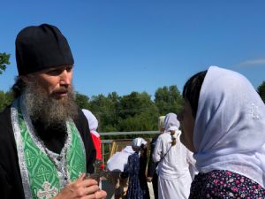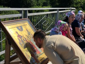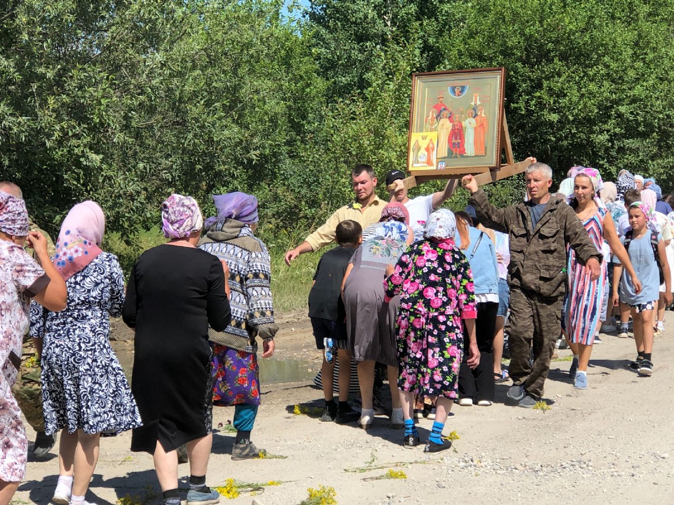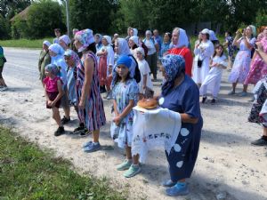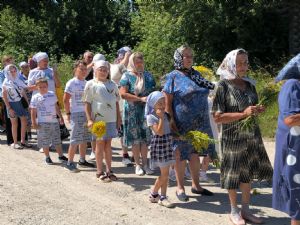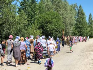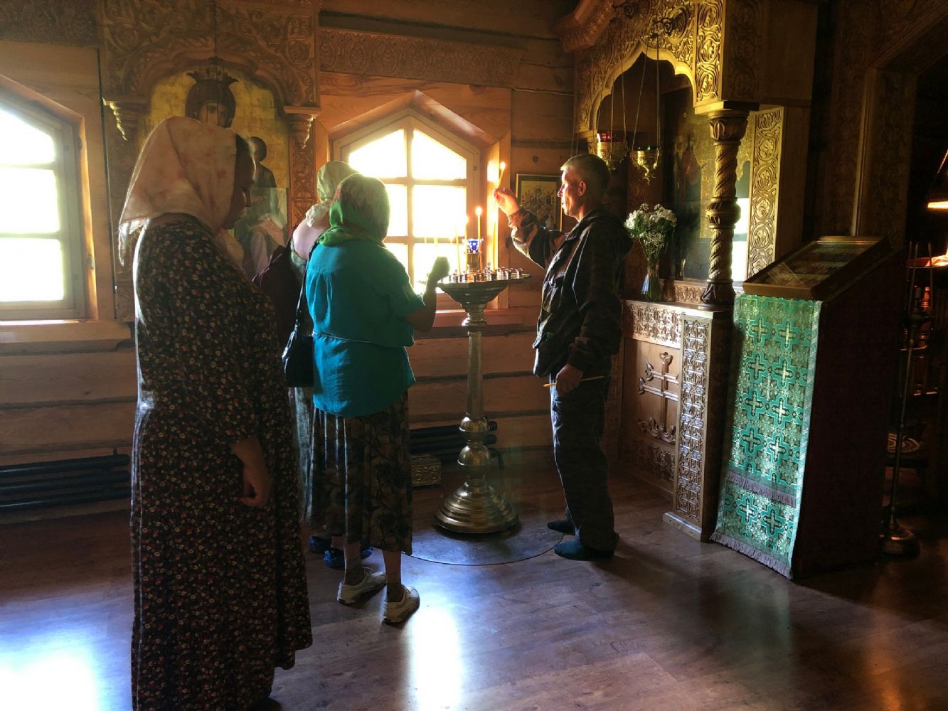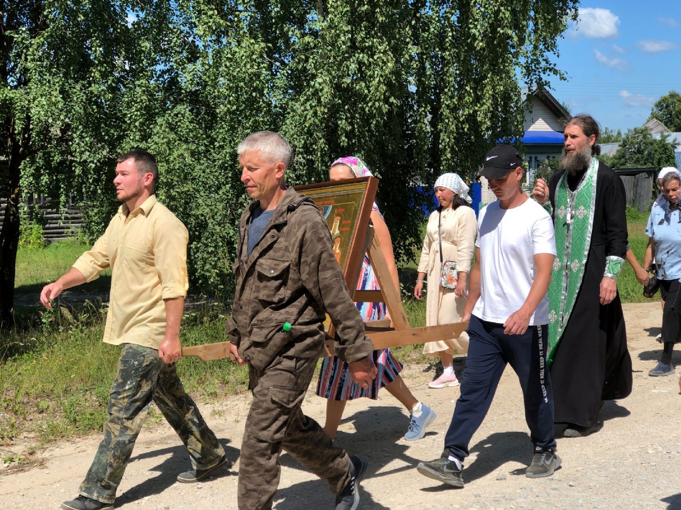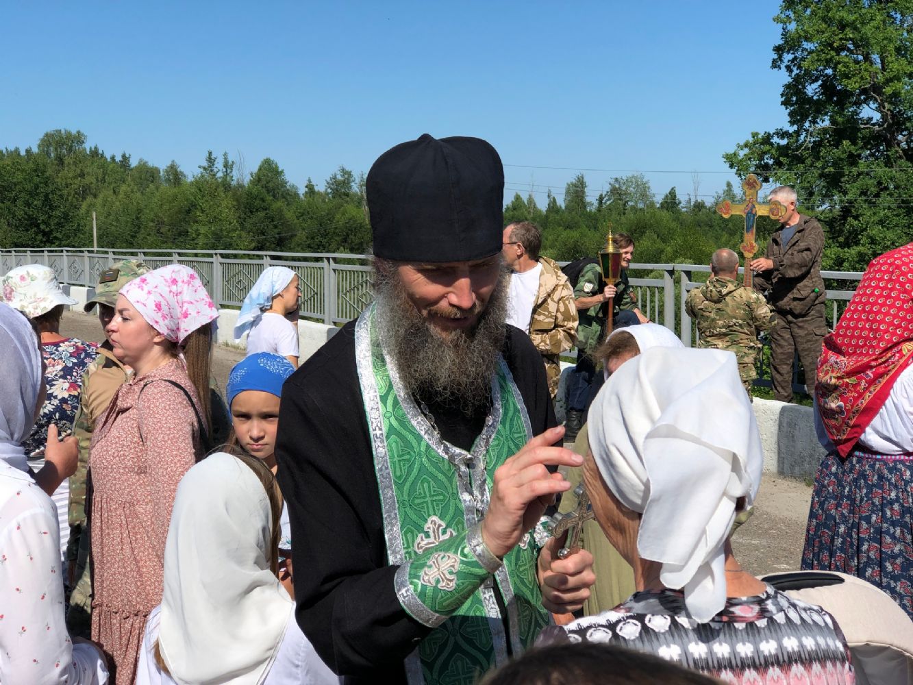 Следует отметить, что этот крестный ход протяженностью 23 километра весьма непростой – основная часть маршрута проходит по грунтовой дороге, через лес. Жители встречающихся на пути населенных пунктов радушно встречали крестоходцев, прикладывались к иконам, а некоторые присоединялись к молитвенному шествию. В деревне Памъялы была сделана остановка на отдых. Отец Андрей отслужил молебен у часовни Святой Троицы, обратился к собравшимся с пастырским словом. Местные жители накрыли столы с угощением – подкрепившись, крестоходцы двинулись дальше.