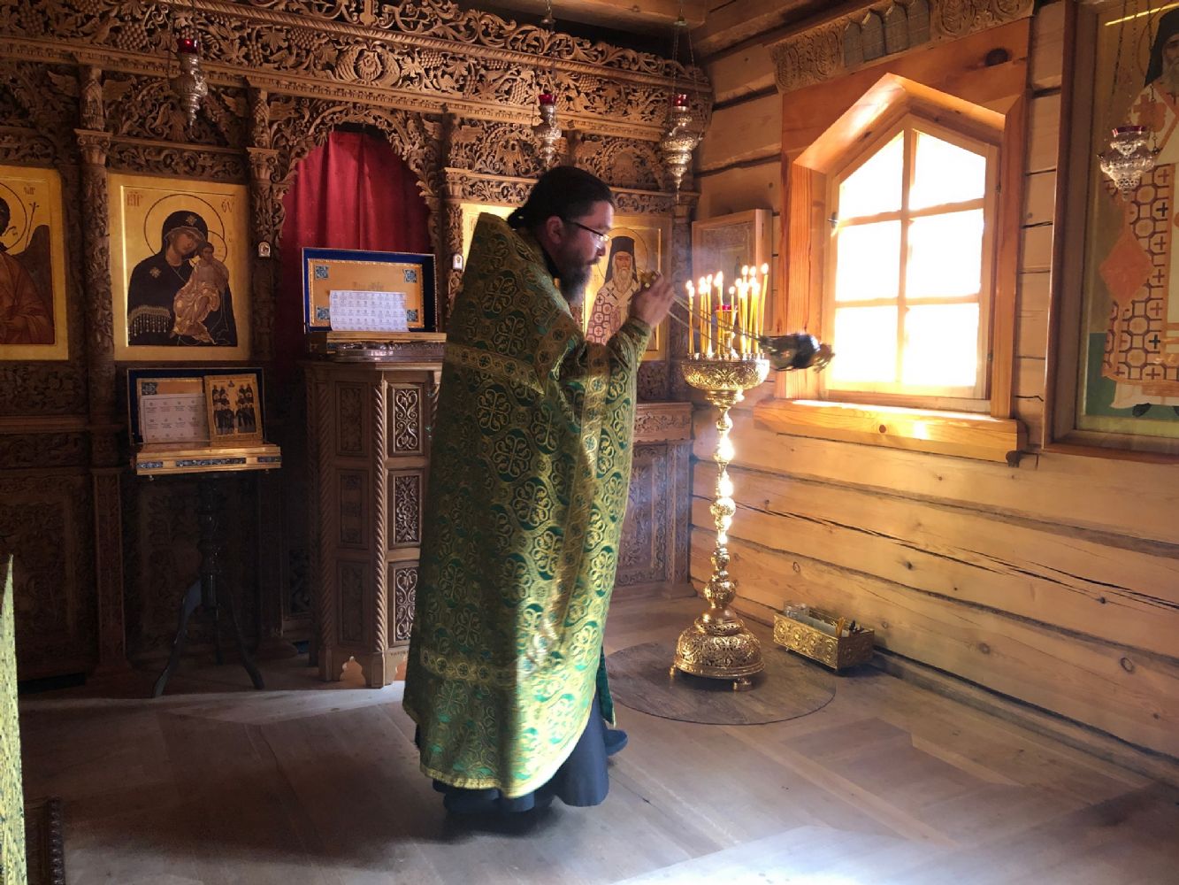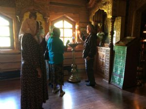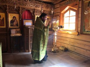И вот, конечный пункт маршрута – Богородице-Сергиев мужской монастырь. Отец Андрей отслужил благодарственный молебен. А после небольшого перерыва началось всенощное бдение в честь престольного праздника монастыря – 18 июля исполняется 600 лет со дня обретения честных мощей преподобного Сергия Радонежского. Совершил богослужение настоятель храма прп. Андрея Критского с. Елембаево Новоторъяльского района протоиерей Сергий Бажанов.