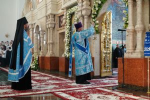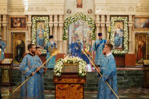 24 июля, в канун праздника иконы Божией Матери «Троеручица», дня образования Йошкар-Олинской и Марийской епархии, в Благовещенском кафедральном соборе г. Йошкар-Олы было совершено праздничное всенощное бдение.