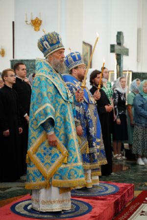 Богослужение возглавили митрополит Йошкар-Олинский и Марийский Иоанн, митрополит Вятский и Слободской Марк, митрополит Саранский и Мордовский Зиновий, епископ Альметьевский и Бугульминский Мефодий, епископ Яранский и Лузский Паисий и епископ Волжский и Сернурский Феофан.