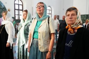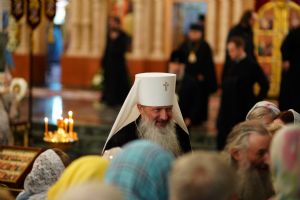 На утрене после чтения Евангелия епископ Волжский и Сернурский Феофан в центре храма помазывал верующих освященным елеем.