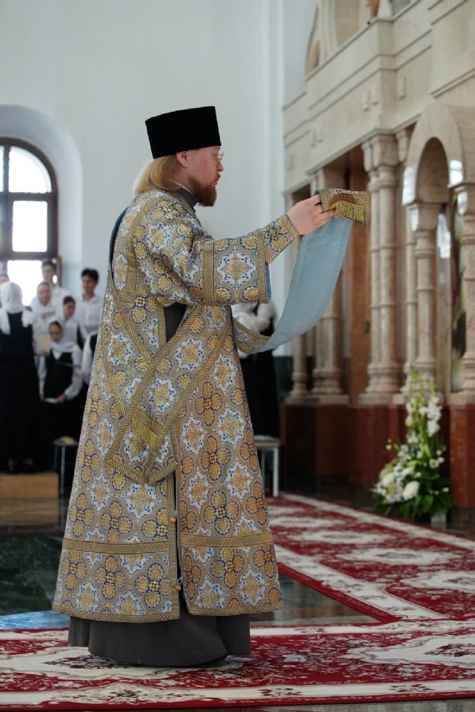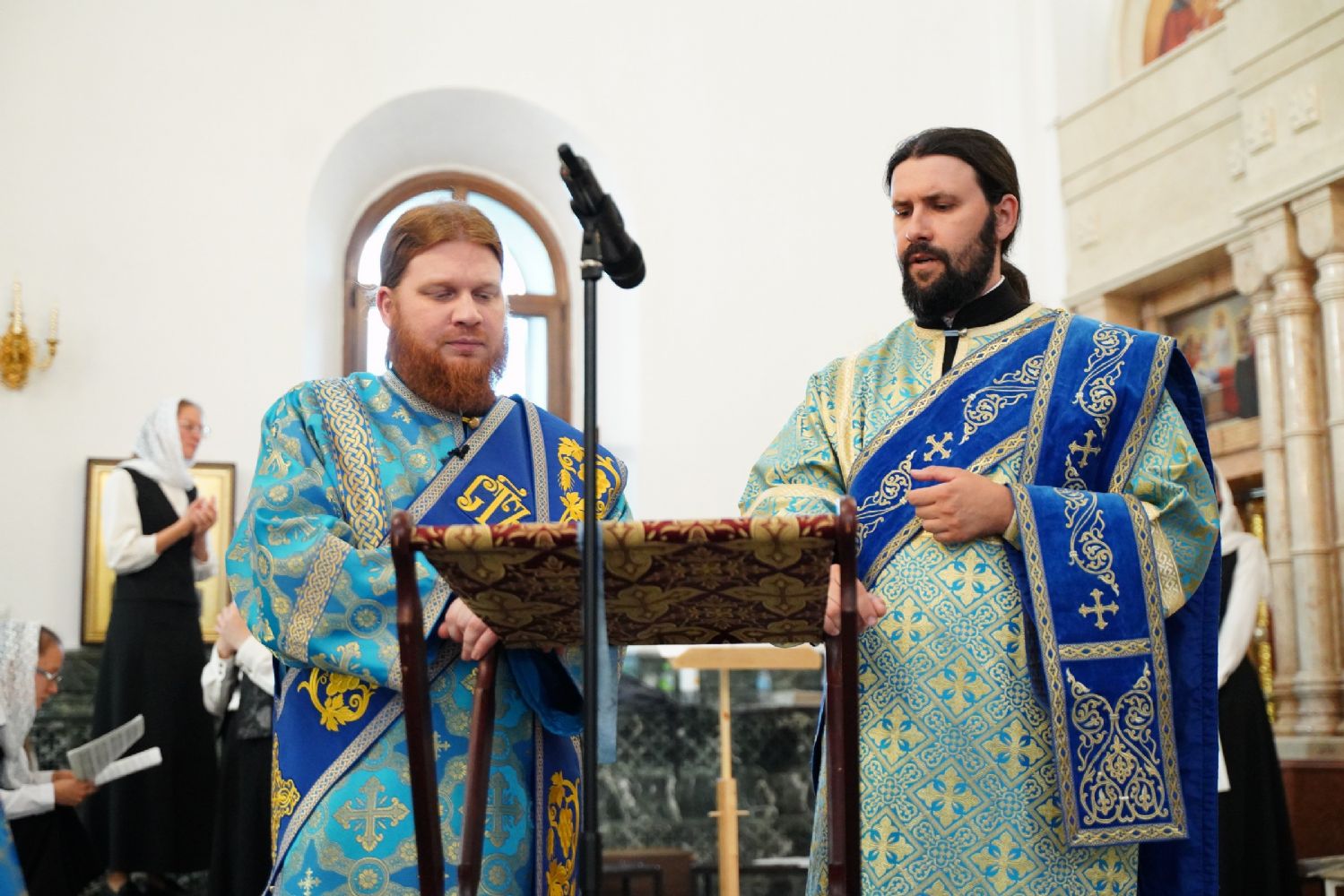 На вечерне читались ветхозаветные паремии из книг Бытия, пророка Иезекииля и Притчей Соломоновых, прообразующие Пресвятую Богородицу.
