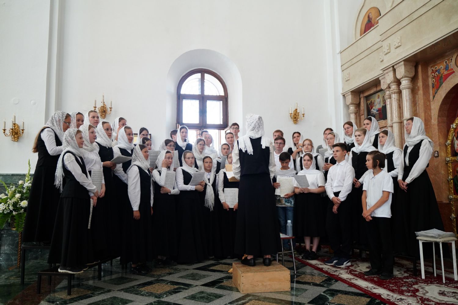 Песнопения исполняли антифонно сводный хор храмов Йошкар-Олы под управлением Ангелины Бабиной и детско-юношеский хор «Благовест» под управлением Татьяны Черновой. Часть богослужебных песнопений исполнял сводный хор священства под управлением иерея Евгения Самойлова.