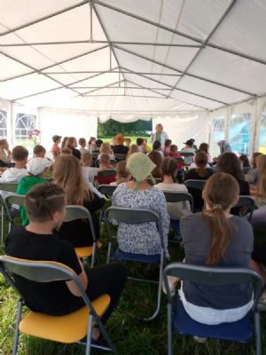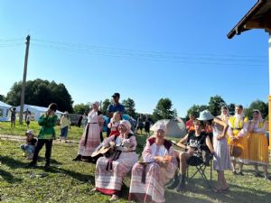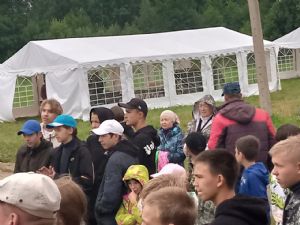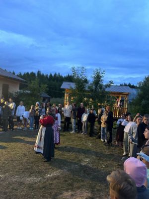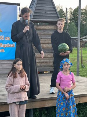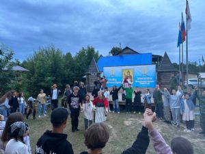 Выехали с утра 18 июля. Прибыли к 10 часам. После завтрака разбили наш бивуак – палатки ставили А.И. Якаев и старшие мальчики Саша Громов, братья Вадим и Женя Герец. После обеда – молебен и крестный ход вокруг лагеря. Затем – торжественное открытие фестиваля и концерт. Дети и родители нашей воскресной школы (все в народных костюмах) исполнили две песни о наставниках под музыку песен «Смуглянка» и «Надежда».