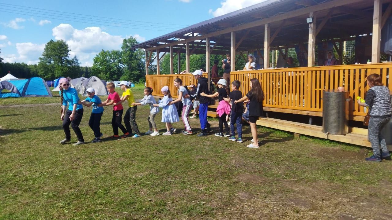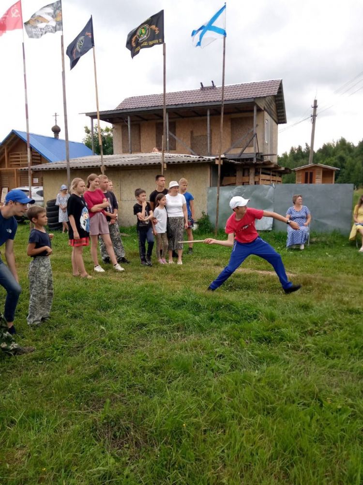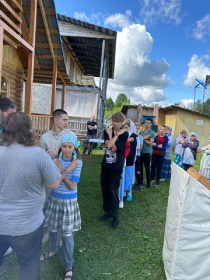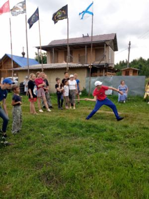 19 июля прибыла любимая всеми «Богатырская застава» из Елембаево – и полдня ребята проводили время в народных богатырских забавах весело и приятно. После обеда в рамках «Живого слова», посвященного 1035-летию Крещения Руси, наша команда дружно исполнила песню «Баллада о князе Владимире». Вечером состоялись мини-футбол и беседа о послушании (для детей разных возрастов соответственно). Ночью с 23 до 24 часов дежурили по лагерю.