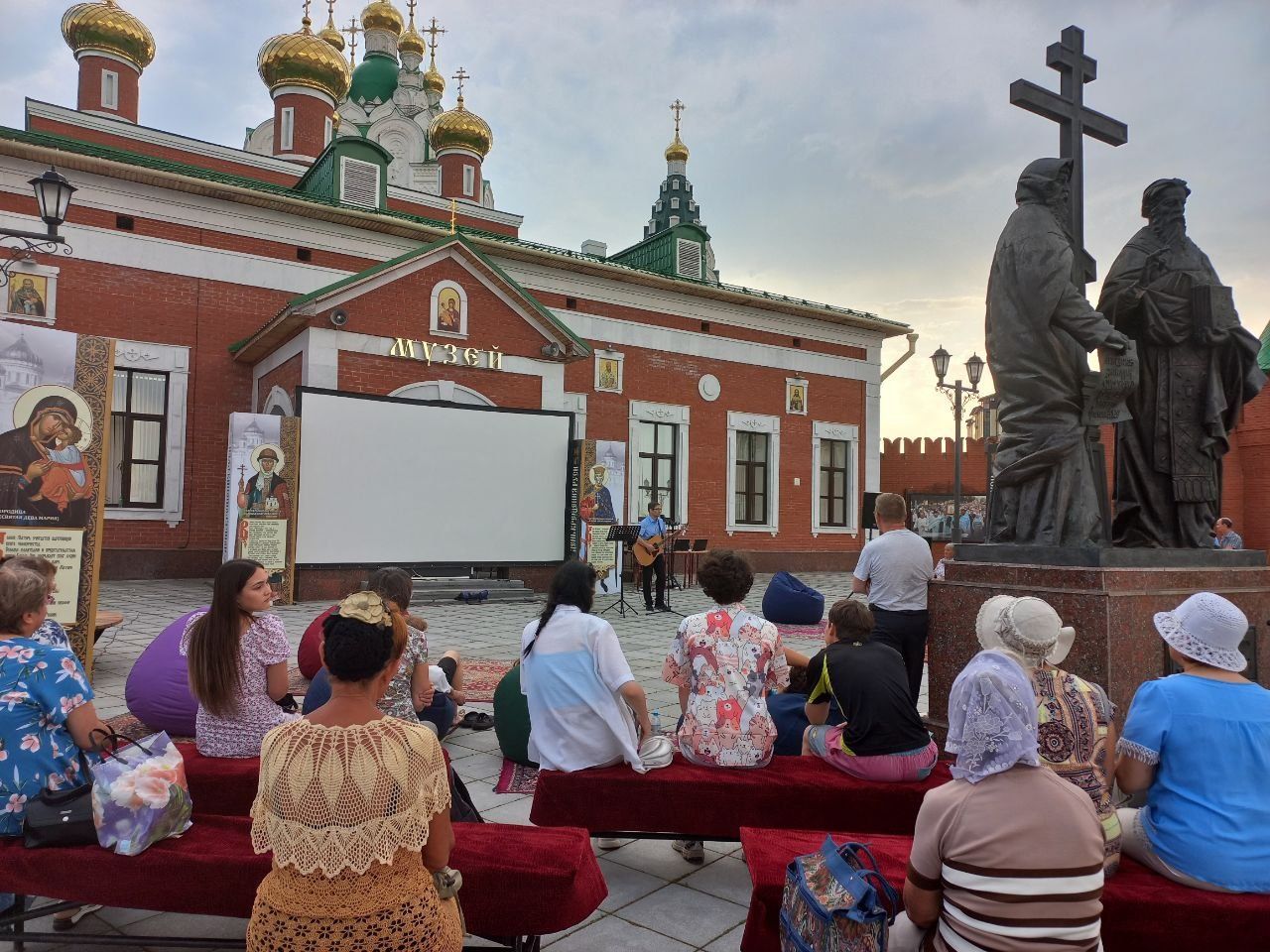 Просмотру документального фильма, посвященного Крещению Руси, помешал начавшийся дождь. Но праздник продолжился в стенах Музея истории Православия. Гости смогли познакомиться с основной экспозицией и принять участие в импровизированном концерте.