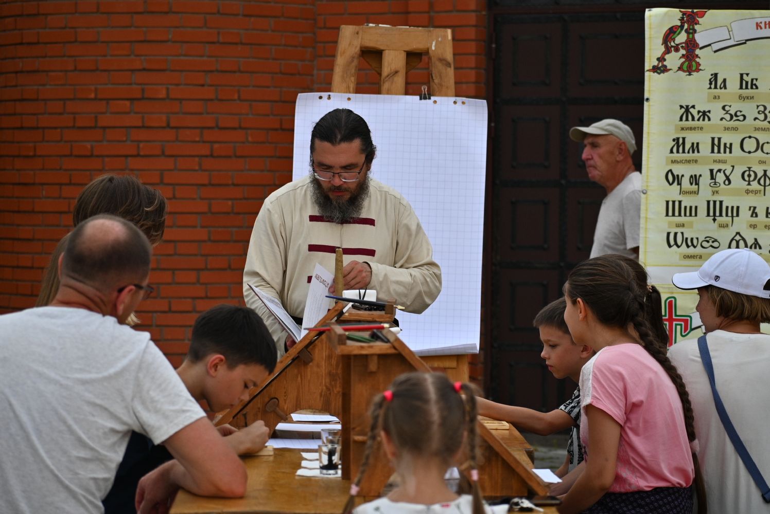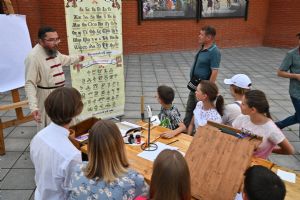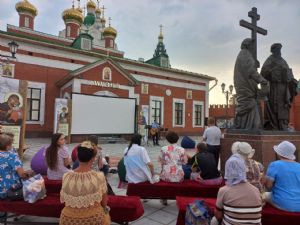 28 июля вечером, в рамках празднования Дня Крещения Руси, в Йошкар-Оле на площади у памятника святым Кириллу и Мефодию на набережной Кокшаги на площади работало множество творческих площадок.
