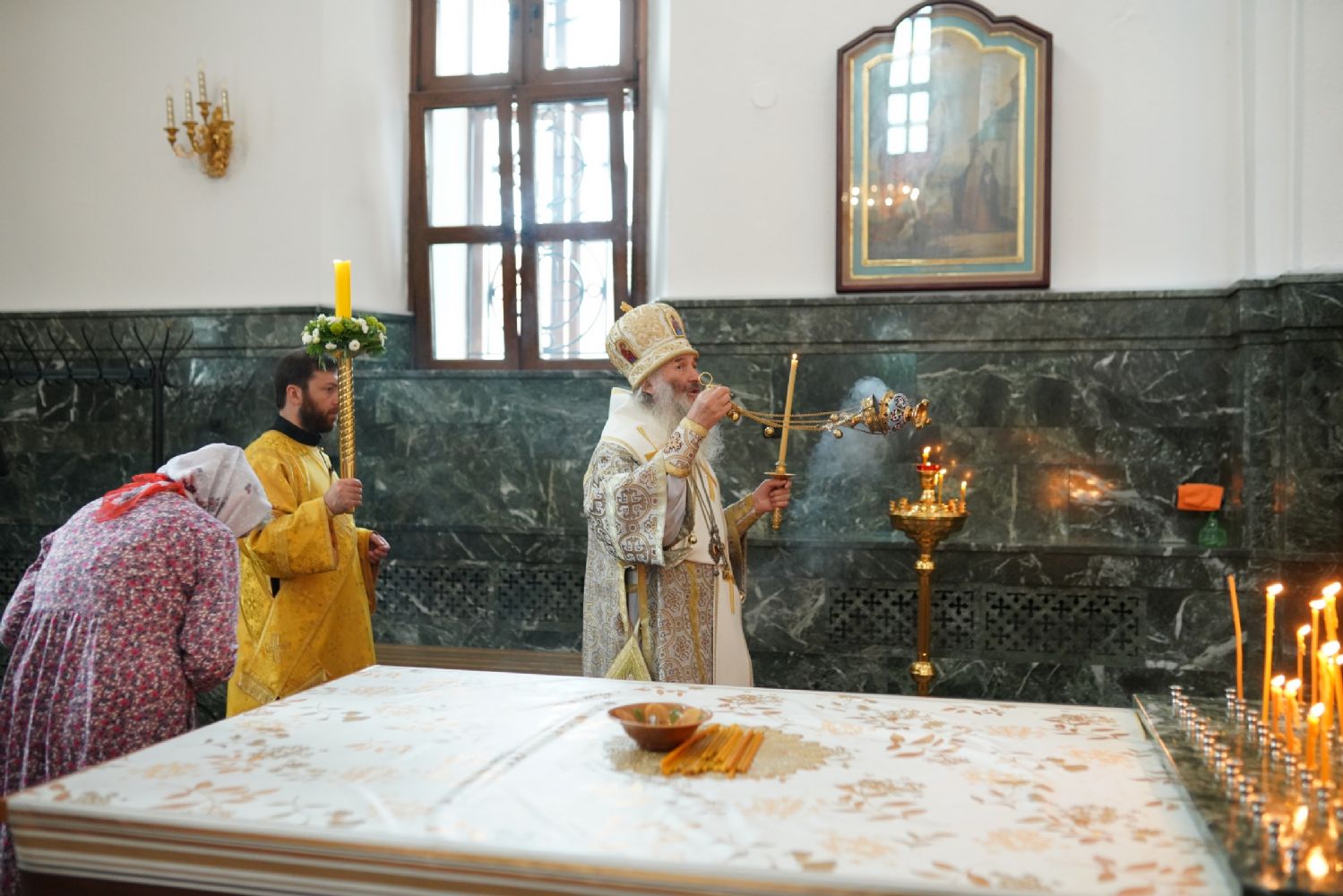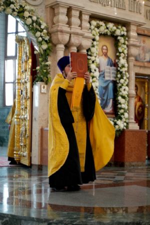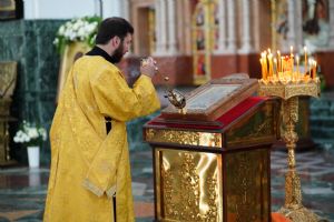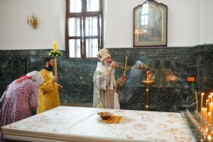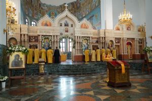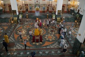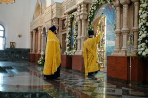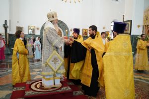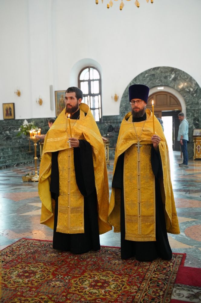 Владыке сослужили клирики кафедрального собора иереи Евгений Самойлов, Александр Староверов, Иоанн Милютин, диакон Артемий Бобоч, а также протодиакон Михаил Козловский. Песнопения исполнял хор «Благовест» под управлением регента Татьяны Черновой.