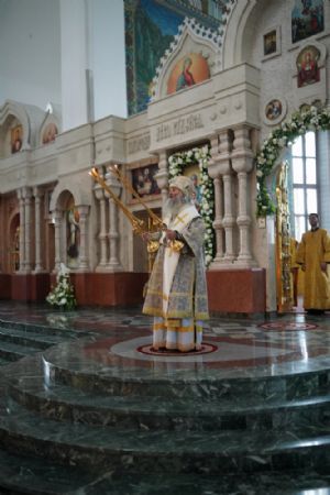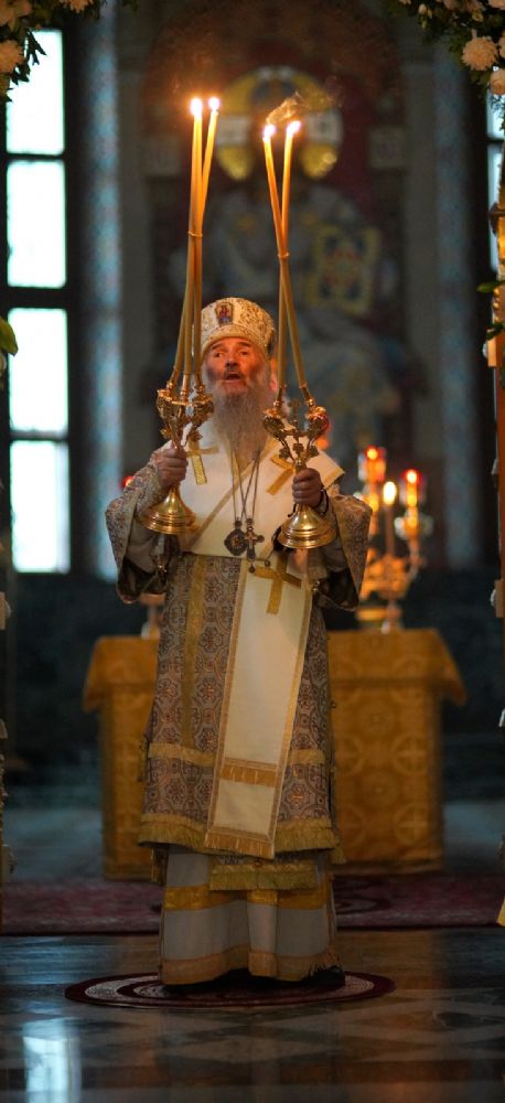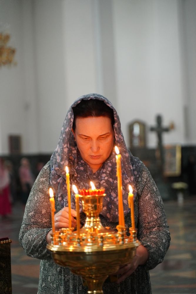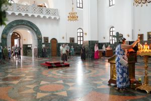 29 июля вечером, накануне Недели 8-й по Пятидесятнице, памяти святых отцов шести Вселенских Соборов, митрополит Йошкар-Олинский и Марийский Иоанн возглавил всенощное бдение в Благовещенском кафедральном соборе.