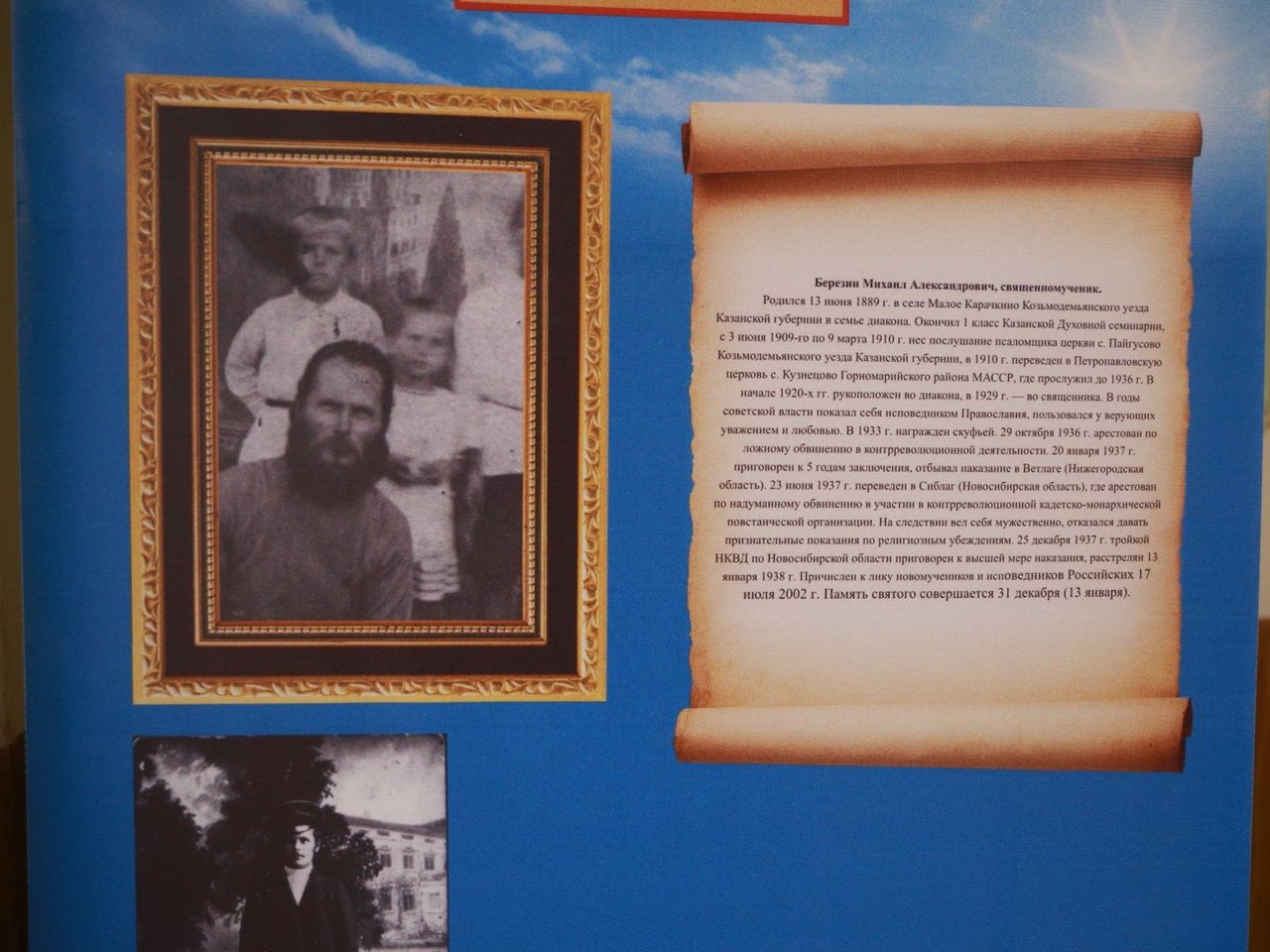 В фойе Центра культуры Волжский краеведческий музей развернул фотовыставку «Храмы Волжской епархии». Храм иконы Божией Матери «Всех скорбящих Радость» г. Волжска представил вниманию зрителей информационные баннеры «Местночтимые святые земли Марийской». Изделиями ручной работы порадовали мастерицы студии декоративно-прикладного творчества «Декор». Сотрудники Центральной библиотеки Волжска познакомили собравшихся с духовной литературой и изданиями о Крещении Руси, а также провели викторину на познание исторических вех, связанных с тематикой праздника. Самые активные участники были награждены специальными призами.