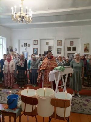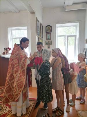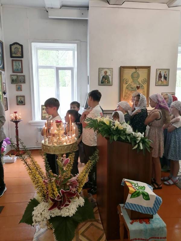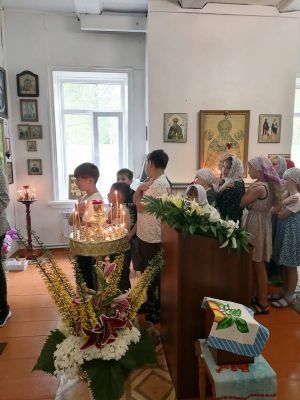 Перед Божественной литургией отслужили водосвятный молебен. Настоятель храма иерей Василий Яшмолкин исповедовал прихожан, среди которых было много детей.