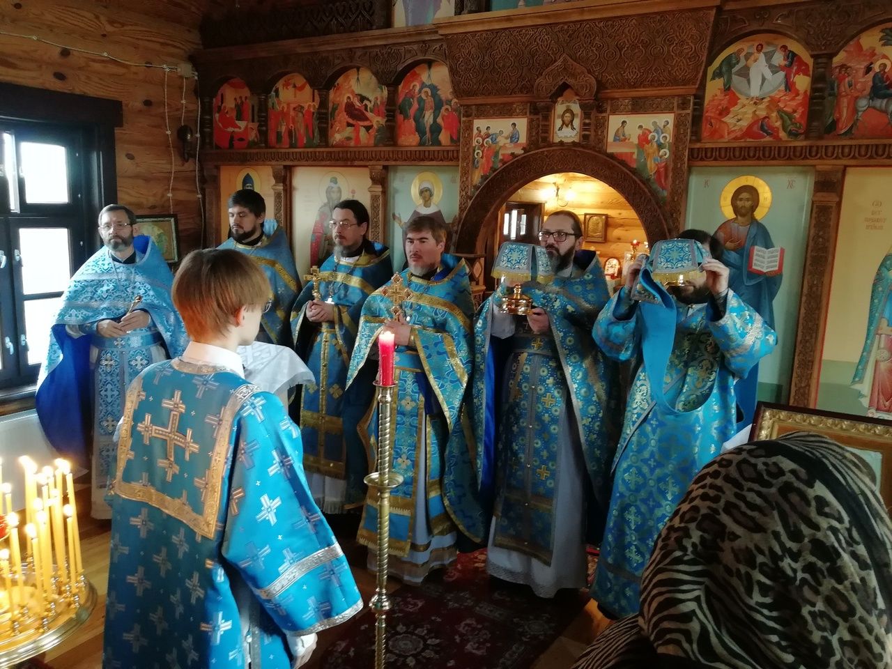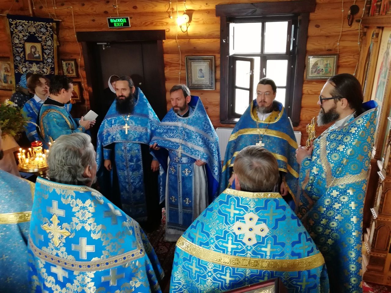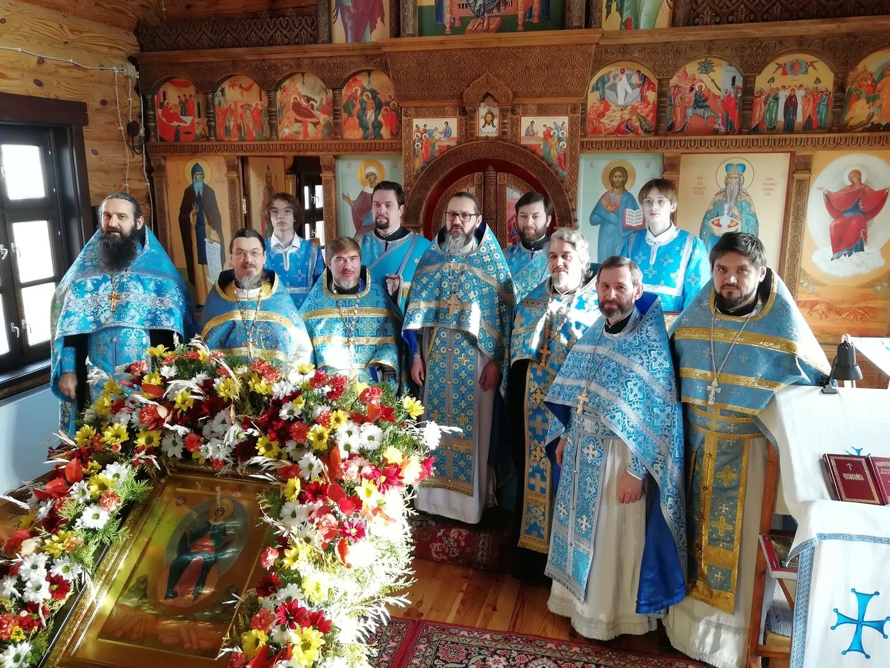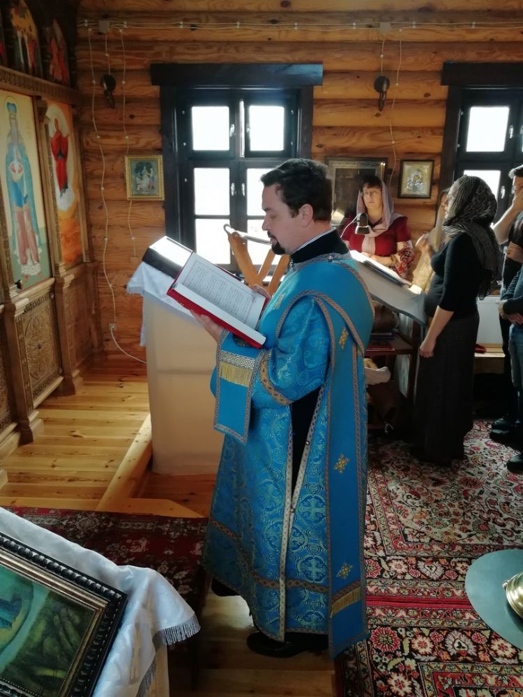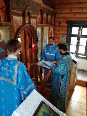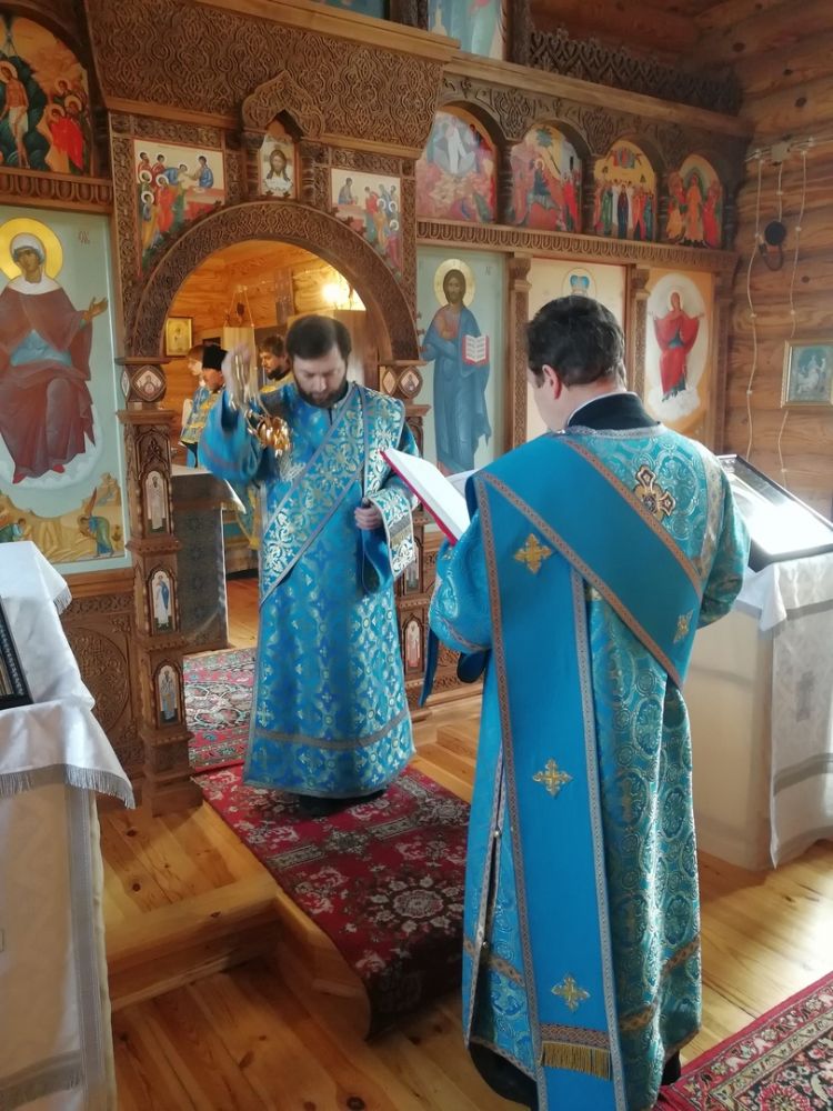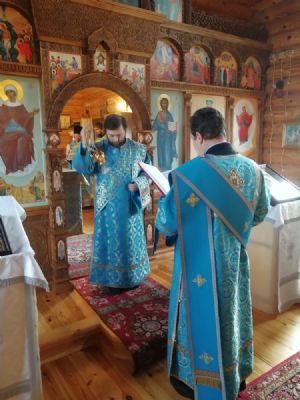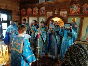После Литургии прошел крестный ход вокруг храма со чтением Евангелия и кроплением святой водой. По возвращении в храм священство и верующие совершили славление и вознесли молитву Пресвятой Богородице.