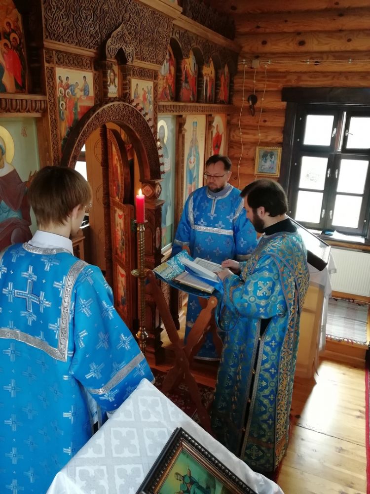 Утром праздничного дня в храме была совершена соборная Божественная литургия. Отцу Димитрию сослужили благочинный Медведевского церковного округа иерей Александр Козлов, настоятель храма Державной иконы Богородицы п. Медведево протоиерей Алексий Михайлов, настоятель храма Рождества Христова г. Йошкар-Олы иерей Александр Лоскутов, клирик храма Рождества Христова иерей Никита Смирнов, клирик Успенского храма г. Йошкар-Олы иерей Никита Иванов, настоятель Петропавловского храма с. Верх-Ушнур иерей Алексий Тарасов, клирик Воскресенского собора г. Йошкар-Олы диакон Алексий Кузнецов и клирик Благовещенского кафедрального собора диакон Артемий Бобоч. Песнопения исполнял хор Троицкого храма г. Йошкар-Олы под управлением Анны Ярошевич.