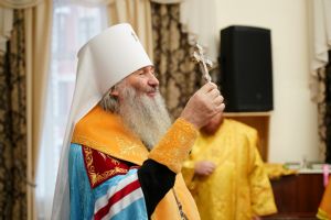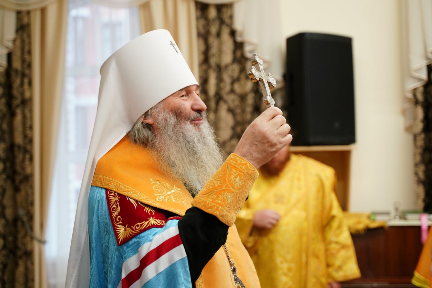 Архипастырю сослужили настоятель собора иерей Андрей Кочаков и клирик Благовещенского кафедрального собора диакон Андрей Дружинин.