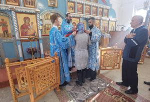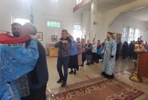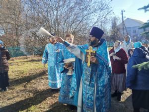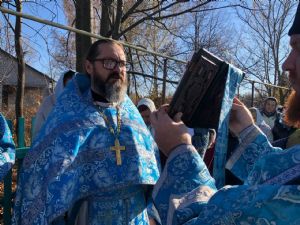 После Литургии, по традиции престольных праздников, вокруг храма прошел крестный ход со чтением Евангелия и кроплением святой водой.