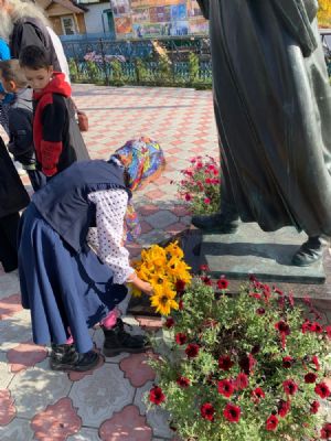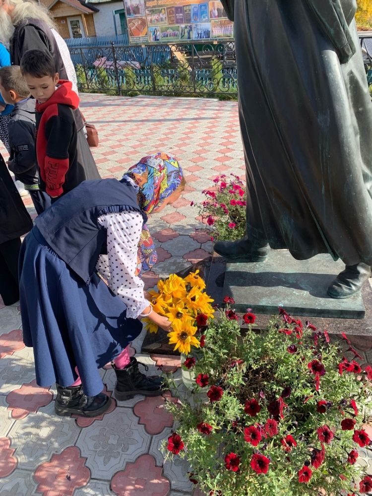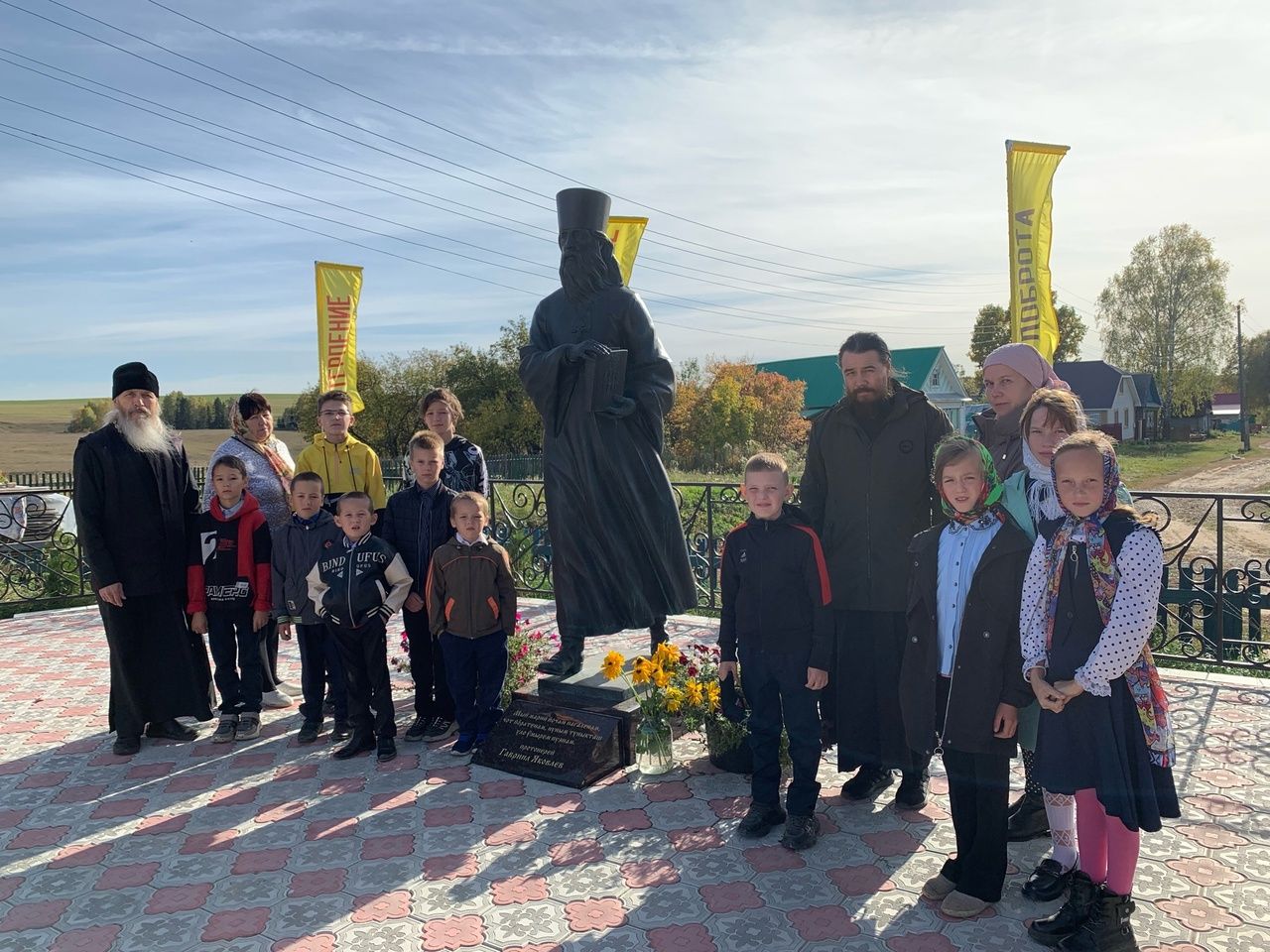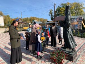 Следующим местом посещения стала площадка, где установлен памятник марийскому просветителю Г. Яковлеву, освященный 25 августа нынешнего года епископом Волжским и Сернурским Феофаном. Здесь собравшиеся были ознакомлены с трудами наставника, его проповеднической и просветительской деятельностью, зачитали его изречения на марийском языке, возложили цветы. Дети с интересом задавали вопросы и получили на них подробные ответы.