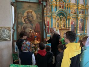 В храме их встретил настоятель – протоиерей Николай Чузаев. Он провёл для детей экскурсию, рассказал об истории храма, о его убранстве и чудотворных иконах, Животворящем Кресте, о приделах, освященных в честь Рождества Христова и Покрова Божией Матери, побеседовал с собравшимися о важных поступках и ответственности их исполнения в жизни каждого человека.