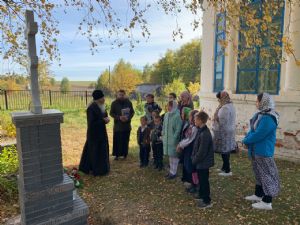 Далее все направились к месту погребения первого марийского просветителя, наставника, миссионера – священника Гавриила Яковлева. Его могила находится у алтарной части храма, дети возложили на нее цветы.