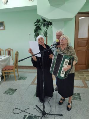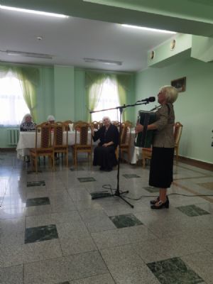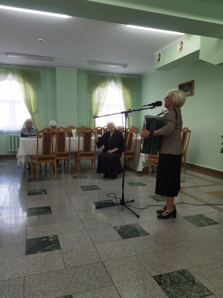 Украшением вечера стало выступление почетной гостьи – заслуженного деятеля культуры РМЭ Лилии Алексеевой. В начале она исполнила свою песню на стихи поэта Сергея Земцова «Дорога к храму». А дальше Лилия Аркадьевна взяла в руки баян – и любимые известные песни вместе с ней пели уже все собравшиеся. Для удобства сестры приготовили для гостей листочки с распечатанными текстами песен.