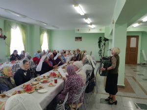 Организатором праздника в Православном центре выступило епархиальное сестричество милосердия во имя преподобномученицы великой княгини Елисаветы. В трапезной были накрыты чайные столы, где собрались работники епархии, сестры милосердия, пенсионеры – все тепло пообщались между собой, поделились воспомнаниями.