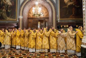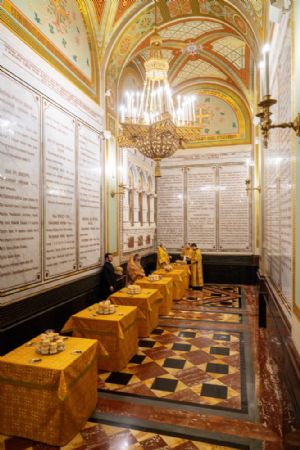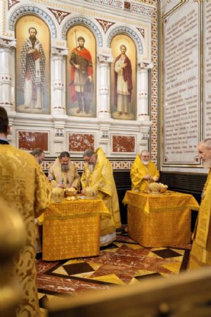 Богослужебные песнопения исполнили хор Храма Христа Спасителя (регент — И.Б. Толкачев) и хор духовенства Московской митрополии под управлением священника Сергия Голева.