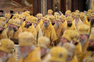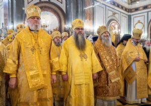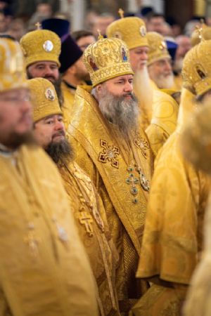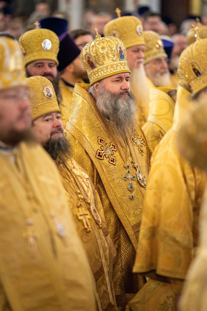 Его Святейшеству сослужили митрополиты, архиепископы и епископы Русской Православной Церкви, представители Поместных Православных Церквей, клирики РПЦ. Среди сослужащих архиереев Марийскую митрополию представляли митрополит Йошкар-Олинский и Марийский Иоанн и епископ Волжский и Сернурский Феофан.