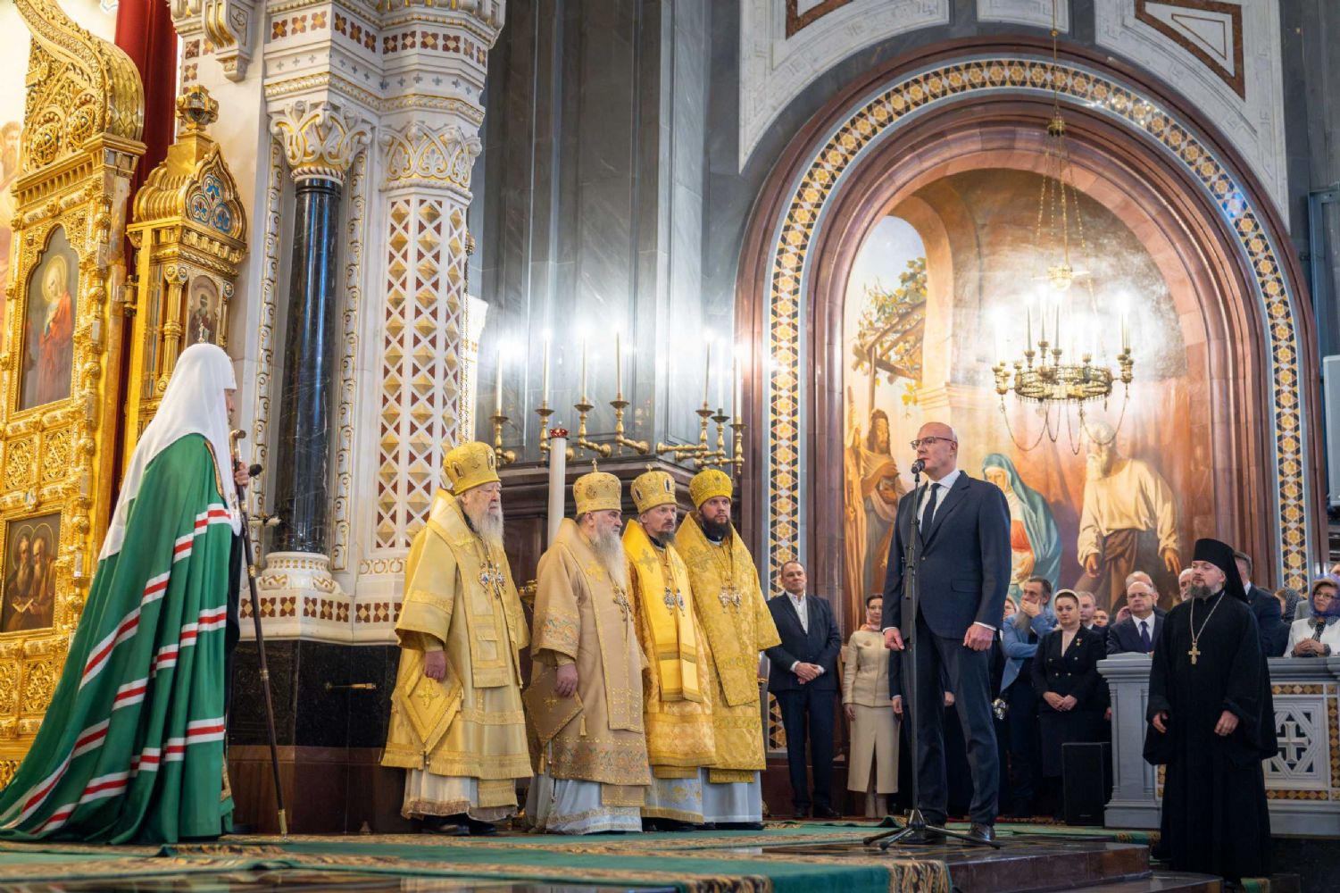 Далее Святейшего Владыку поздравил заместитель председателя Правительства Российской Федерации Д.Н. Чернышенко.