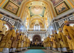 В этот знаменательный день Святейший Патриарх Кирилл совершил в интронизационных облачениях Божественную литургию в кафедральном соборном Храме Христа Спасителя в Москве.