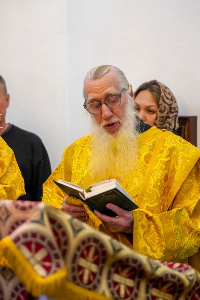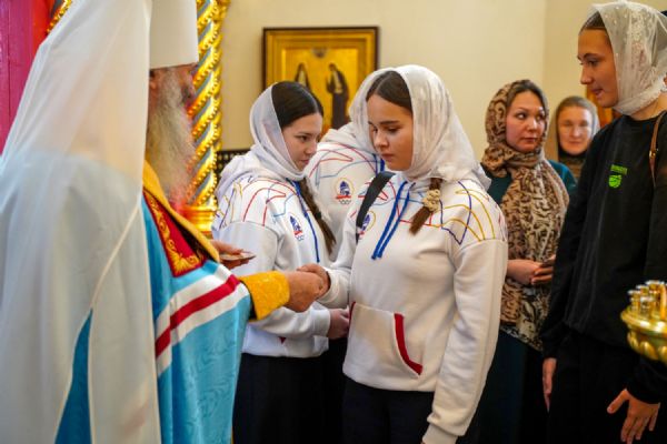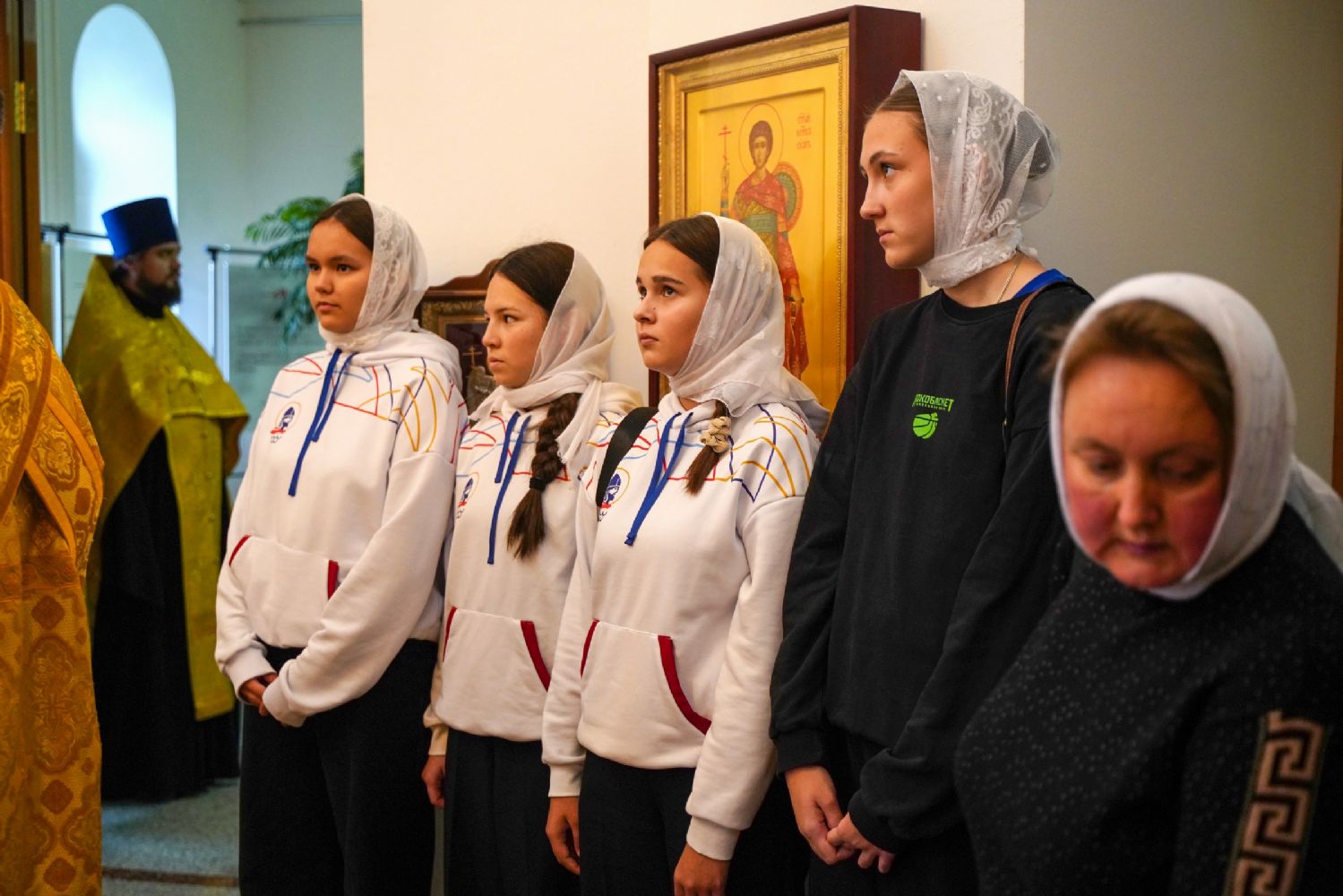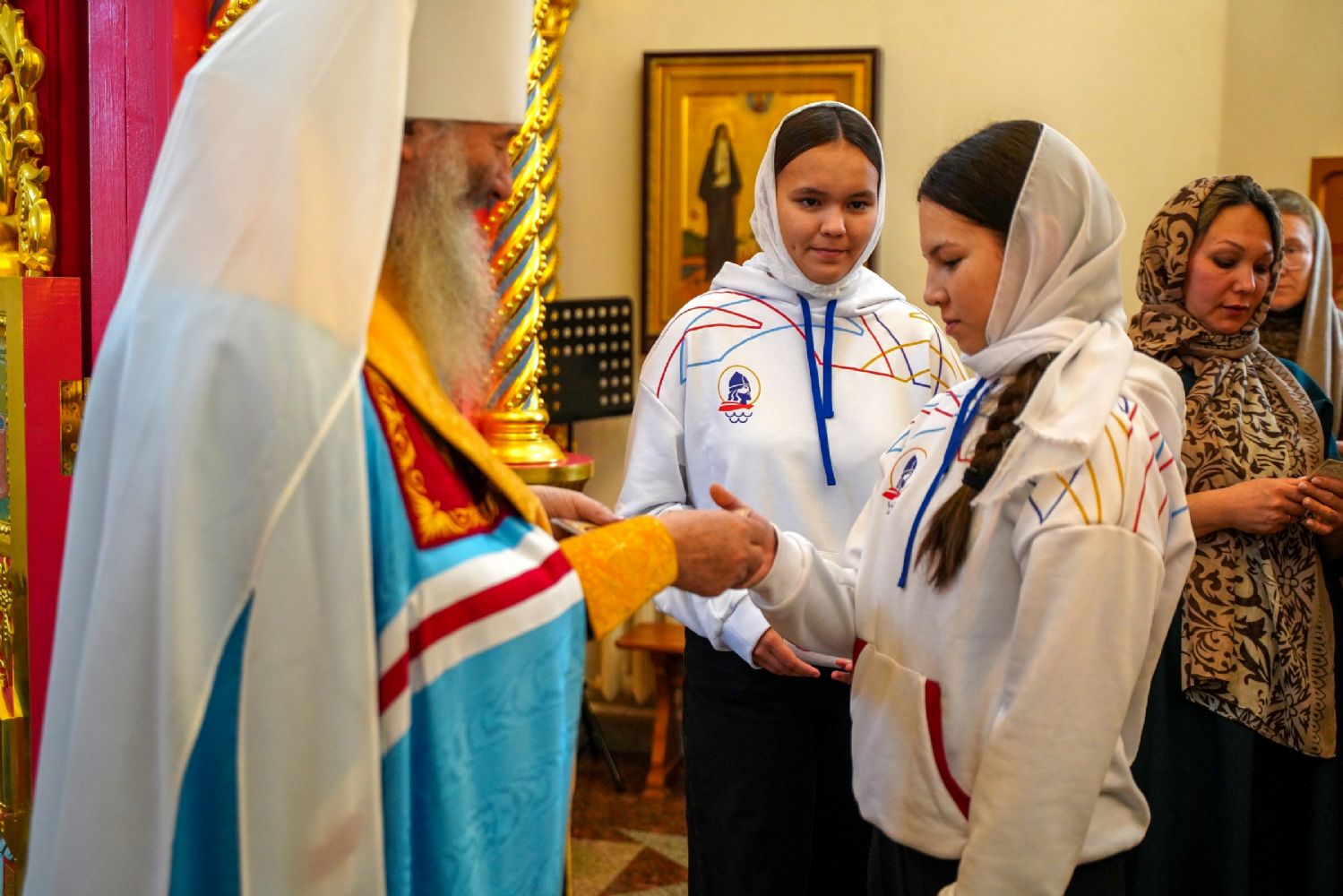 Богослужение возглавил митрополит Йошкар-Олинский и Марийский Иоанн. Владыке сослужили руководитель отдела по делам молодежи Йошкар-Олинской епархии, духовник сборной Республики Марий Эл иерей Никита Иванов и протодиакон Михаил Козловский. Песнопения исполнял малый состав хора «Благовест» под управлением регента Татьяны Черновой.