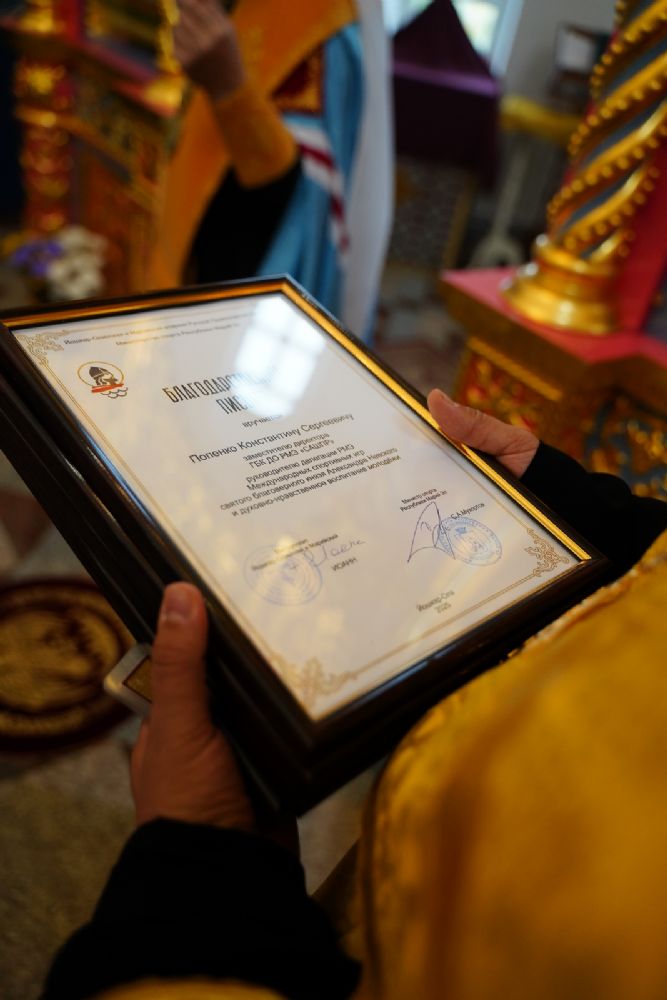 В завершение тренерам сборной республики были вручены благодарственные письма за подписью министра спорта Республики Марий Эл Сергея Алексеевича Мухортова и митрополита Йошкар-Олинского и Марийского Иоанна. Всем спортсменам на молитвенную память розданы иконы Божией Матери «Казанская».