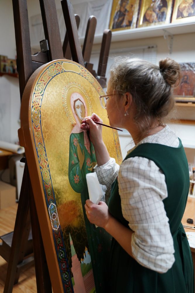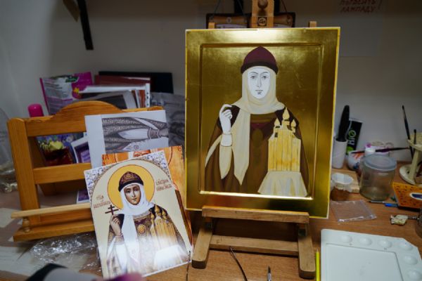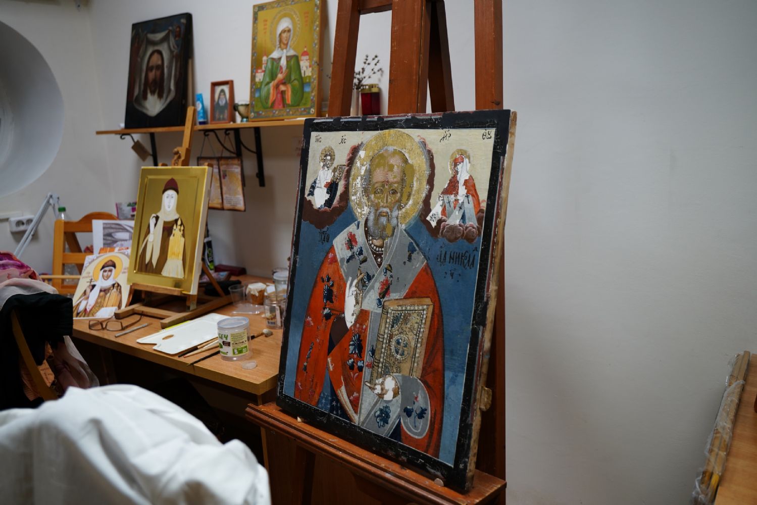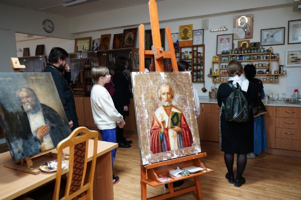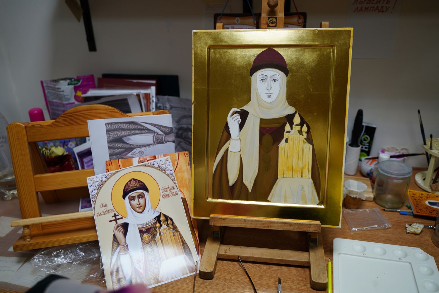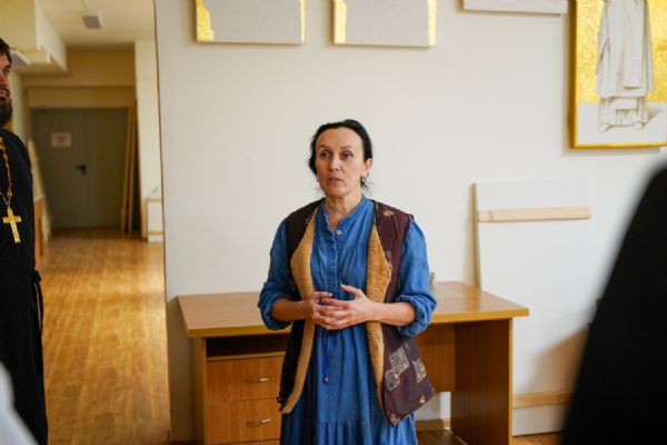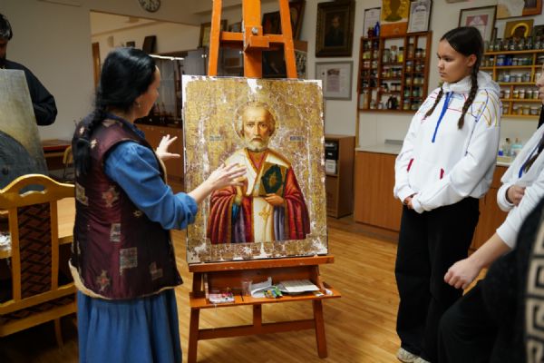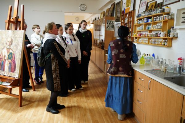 После теплого общения за чайным столом для гостей была проведена экскурсия по Царевококшайской иконописной мастерской.