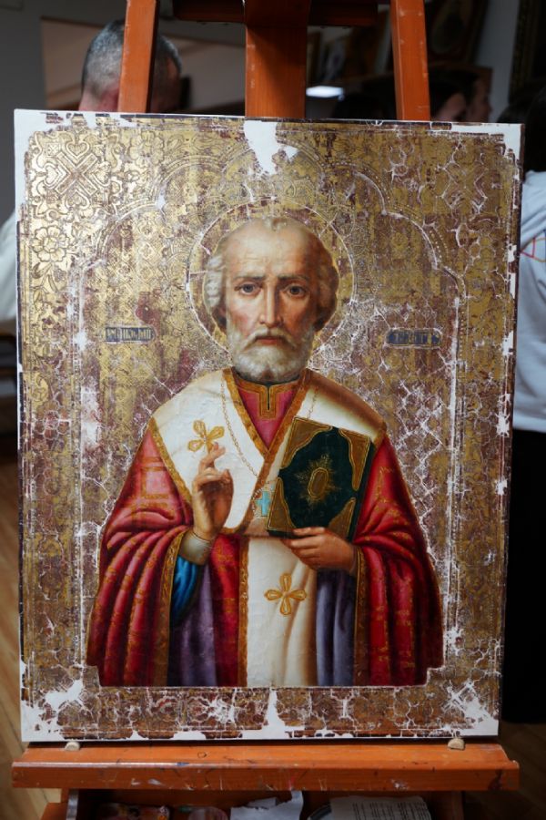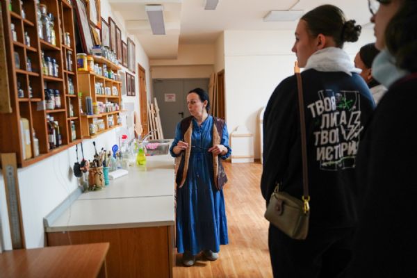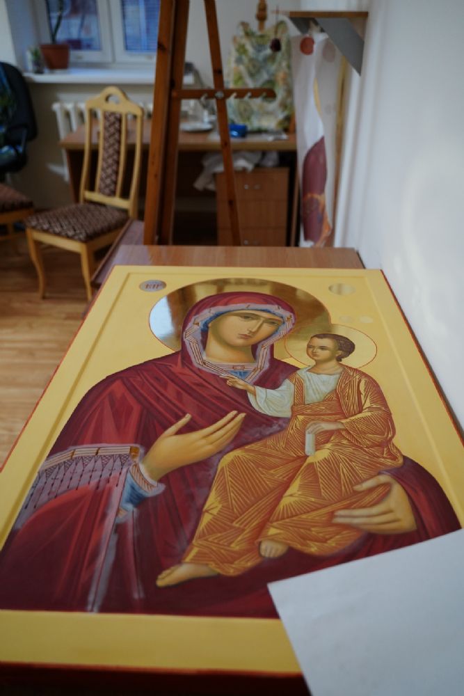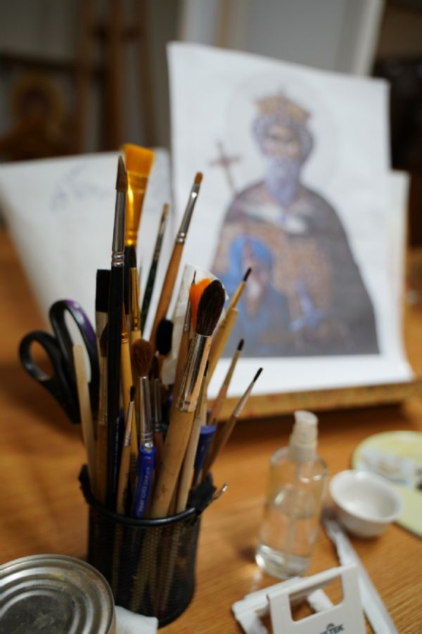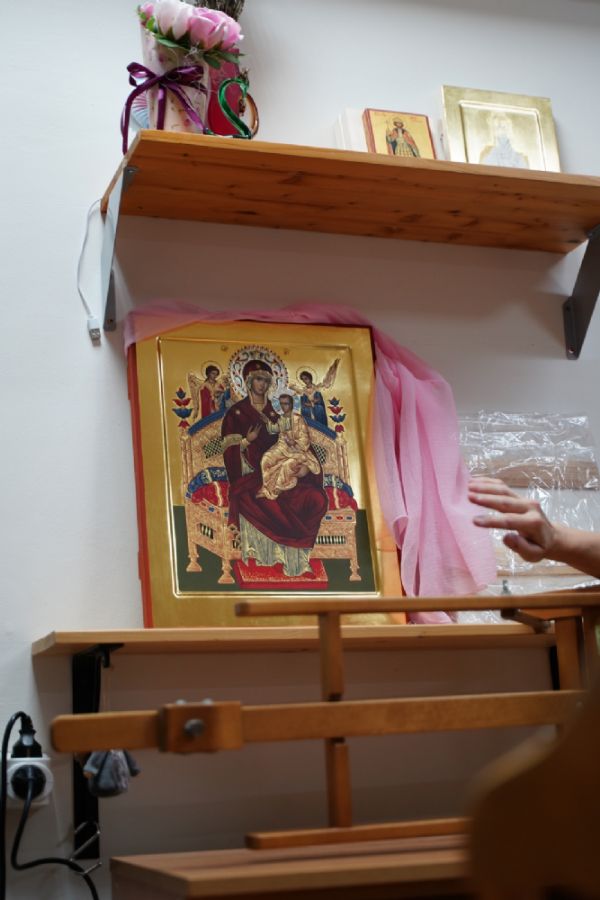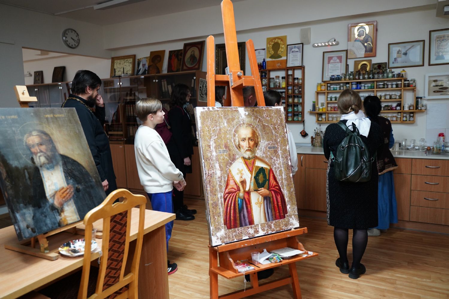 После теплого общения за чайным столом для гостей была проведена экскурсия по Царевококшайской иконописной мастерской.