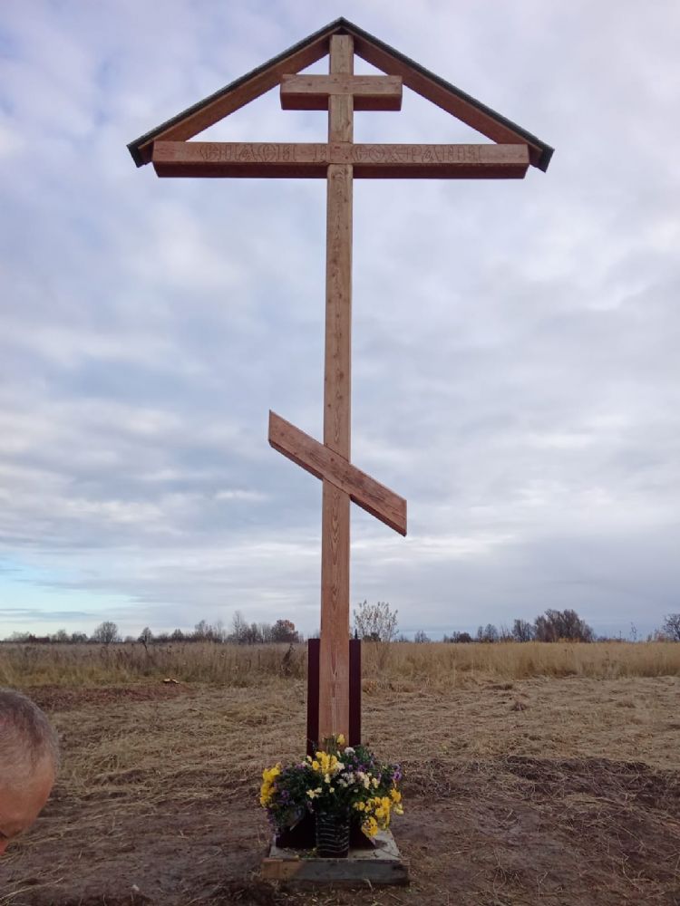 Крест установлен жителями деревни – чтобы люди, воззрев на него, могли попросить милости и помощи у Господа.