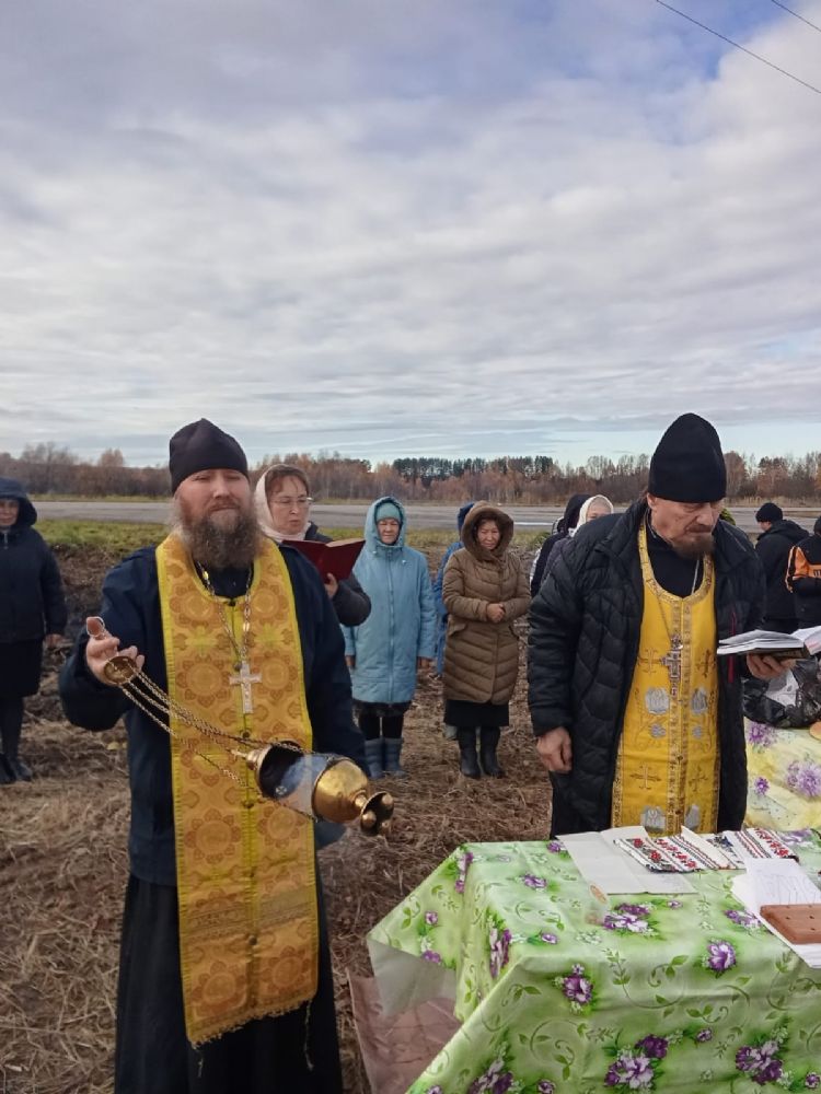 Чин освящения совершили настоятель храма Владимирской иконы Божией Матери с. Владимирское иерей Алексий Васюткин и настоятель Свято-Троицкого храма с. Емелево протоиерей Александр Алешев. Они отслужил водосвятный молебен и окропили святой водой крест и всех собравшихся на это радостное событие.