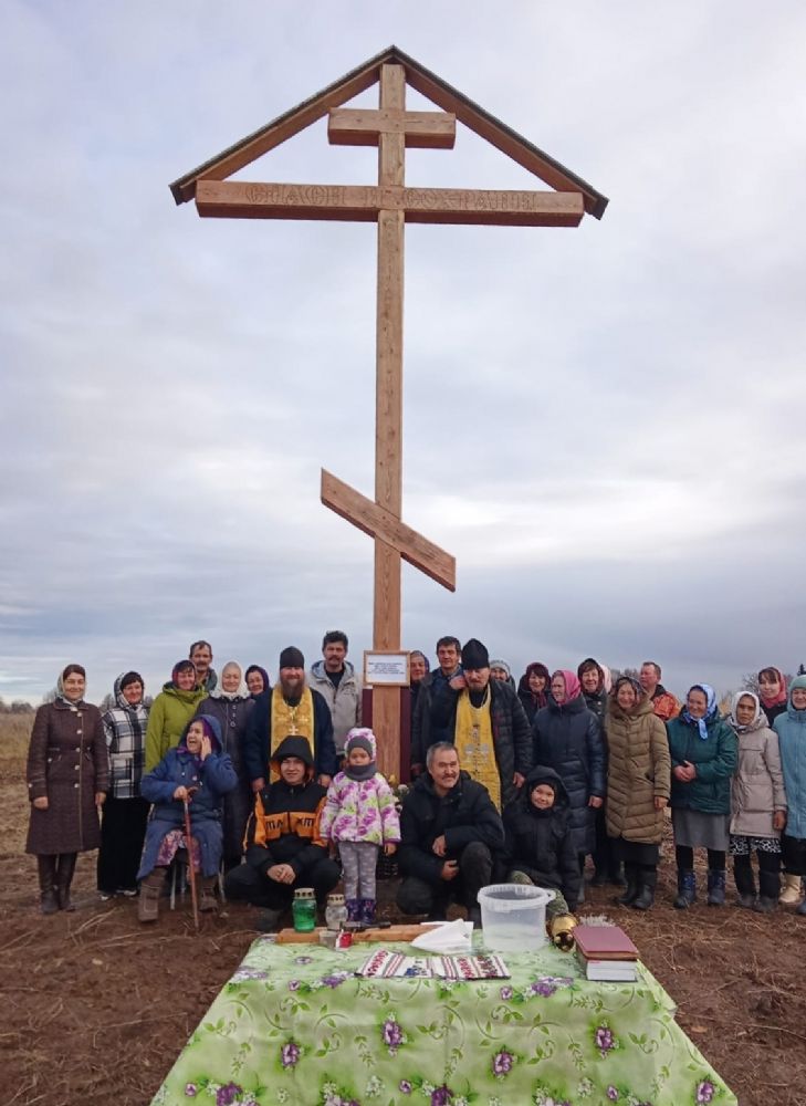 19 октября у дороги на въезде в деревню Пертюково Горномарийского района был освящен поклонный крест.