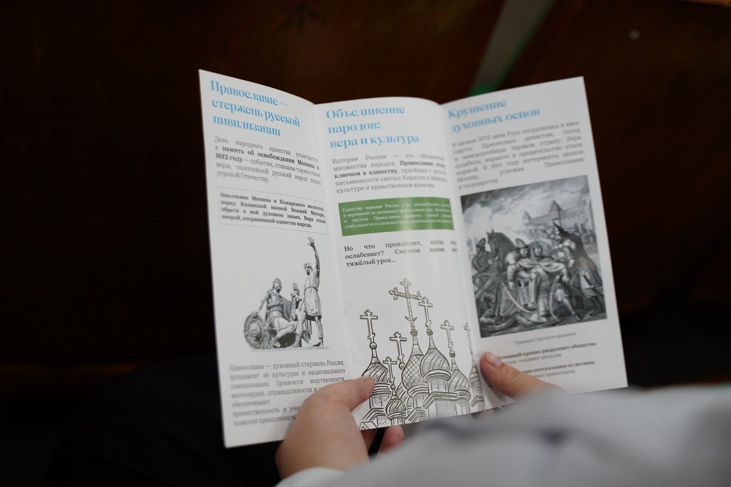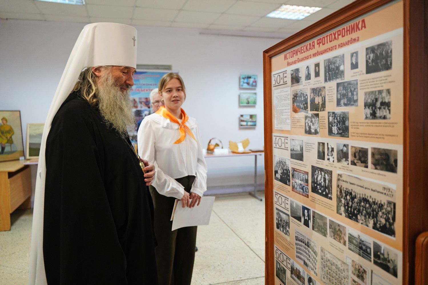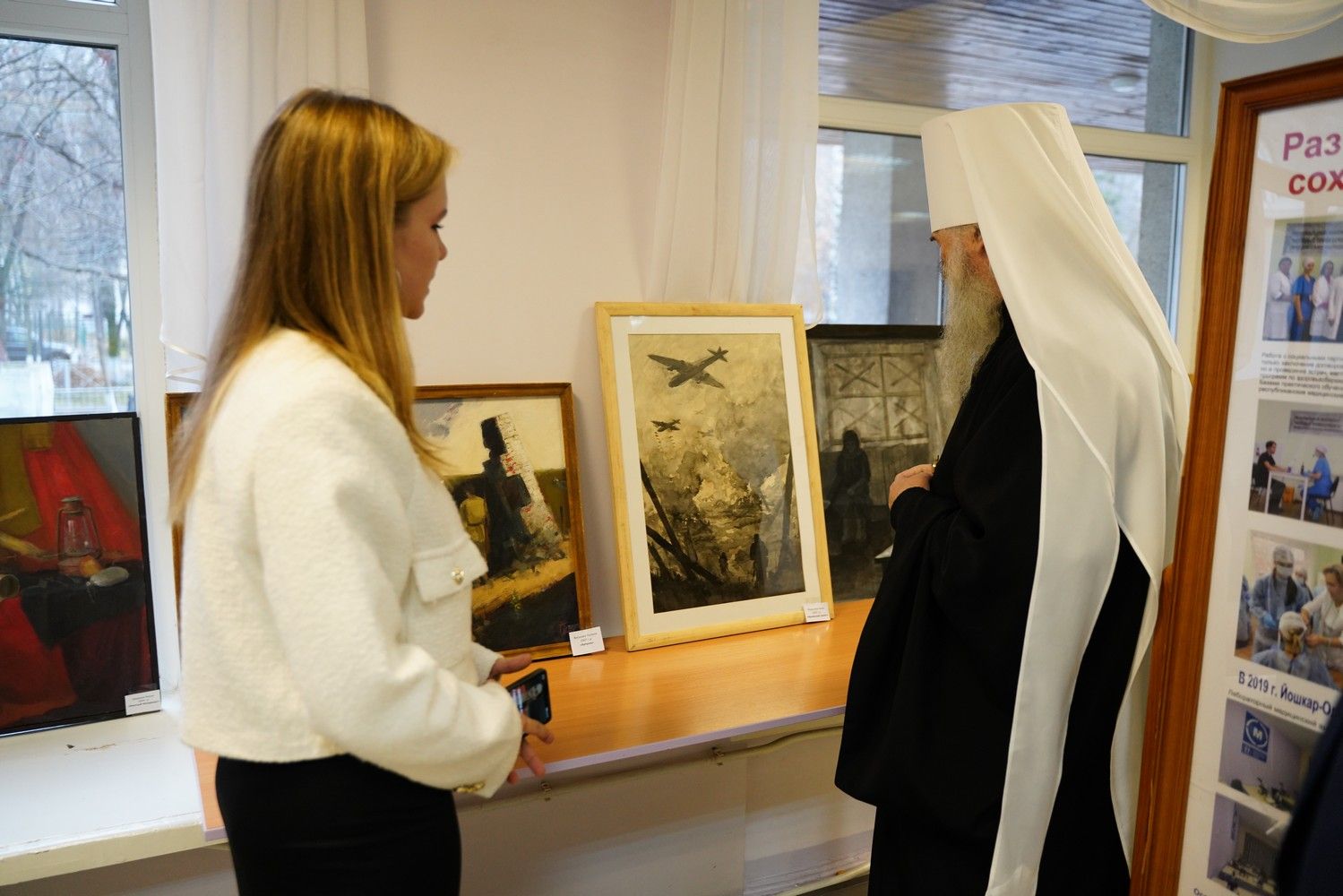 В фойе была представлена выставка работ студентов Йошкар-Олинского художественного училища на военную тематику, а также фотохроника истории медколледжа. Всем участникам конференции раздавались буклеты «День народного единства», подготовленные Синодальным миссионерским отделом.