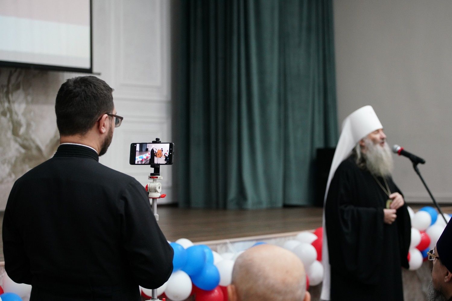 Пленарное заседание посетил митрополит Йошкар-Олинский и Марийский Иоанн, владыку сопровождал секретарь Йошкар-Олинского епархиального управления иерей Димитрий Дьяков, окормляющий данное учебное заведение.
