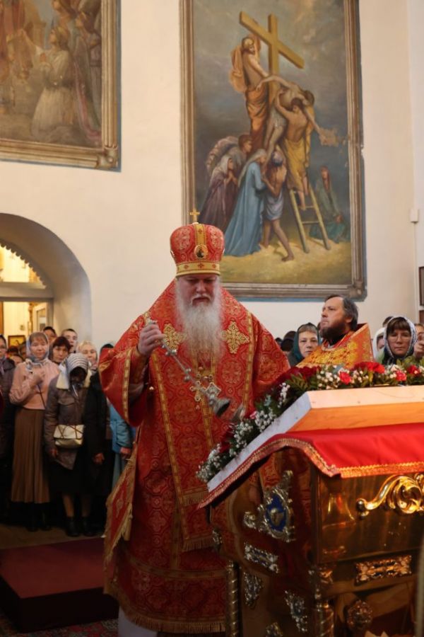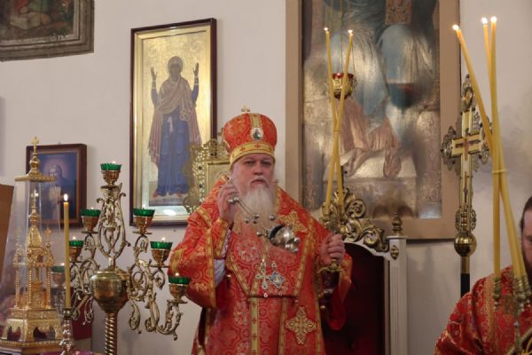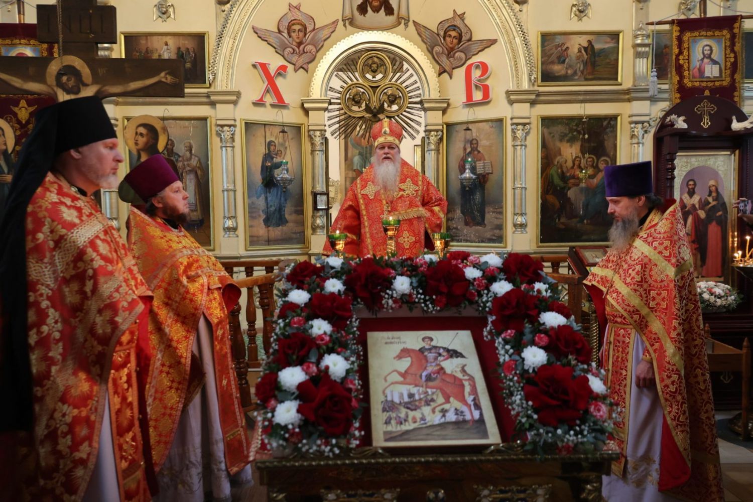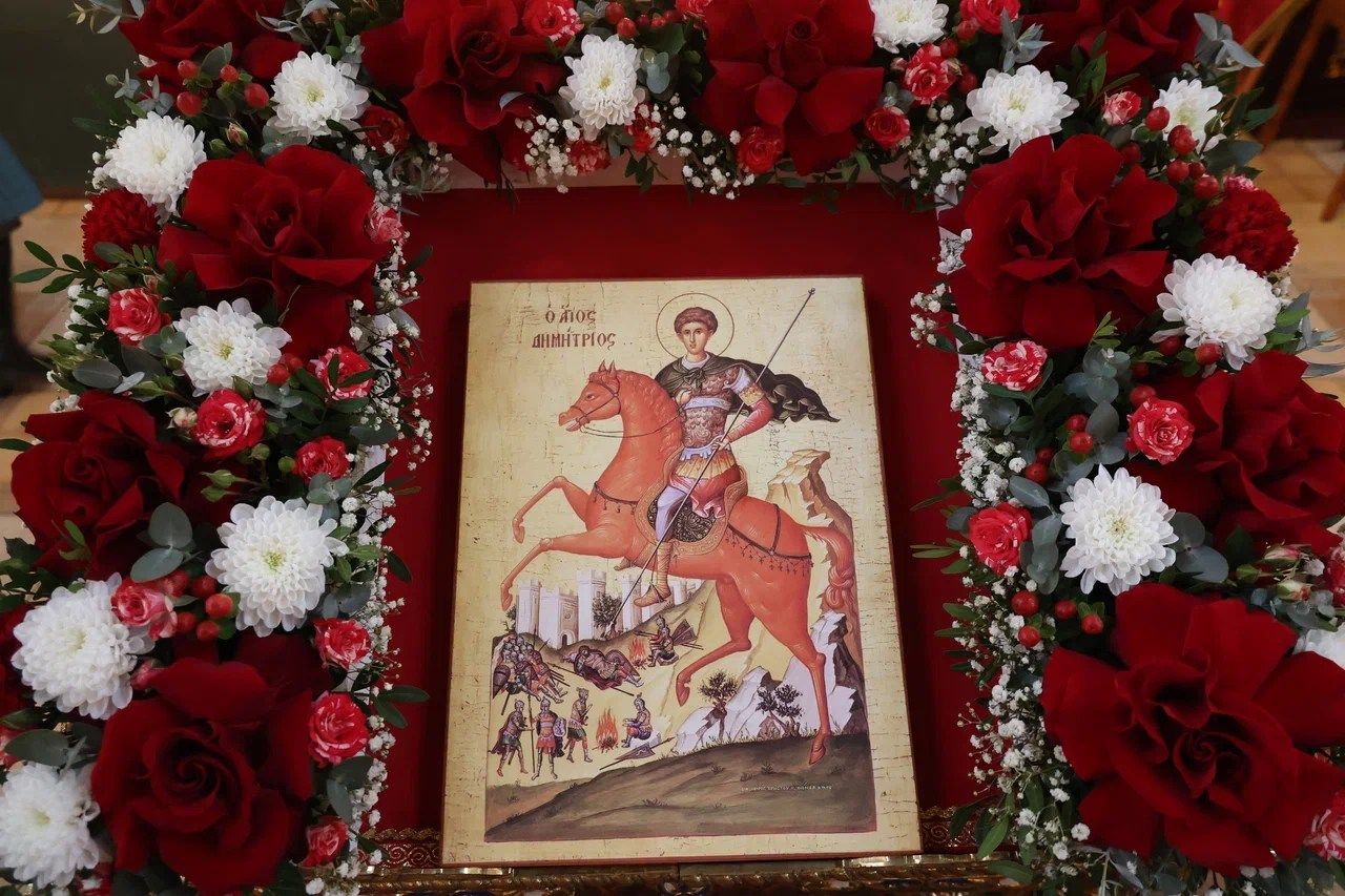 Обращаясь к собравшимся с проповедью, епископ Феофан рассказал о житии празднуемого святого – великомученика Димитрия, проконсула города Солуни в Римской империи (ныне Салоники в Греции). Воспитанный родителями в христианской вере, он безбоязненно перед всеми людьми исповедовал свою веру в Господа нашего Иисуса Христа, обличал языческие заблуждения, строил храмы, разрушал идольские капища, обращая многих к истинному Богу. За это он по приказу императора-язычника Галерия Максимиана в 306 году был заточен в темницу, а затем воины там казнили его, пронзив копьями.