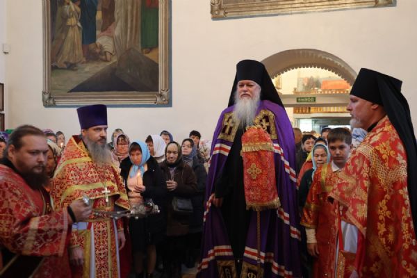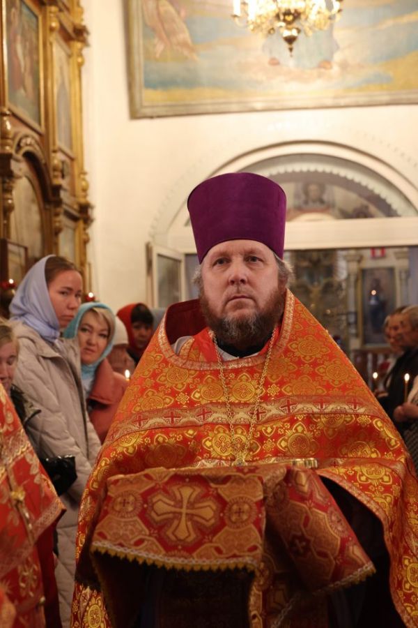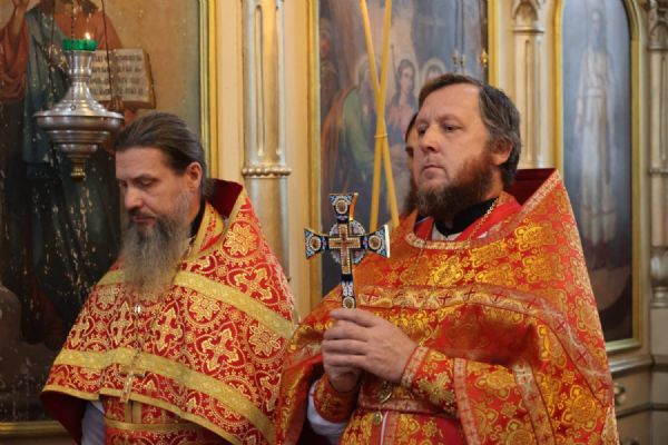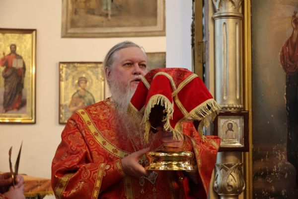 Архипастырю сослужили настоятель храма протоиерей Евгений Бакутов, благочинный Волжского церковного округа иерей Алексий Скрябин, клирики Никольского кафедрального собора иеромонах Александр (Чеборов) и диакон Иоанн Захаров. Песнопения исполнял хор под управлением Елены Васильевой.