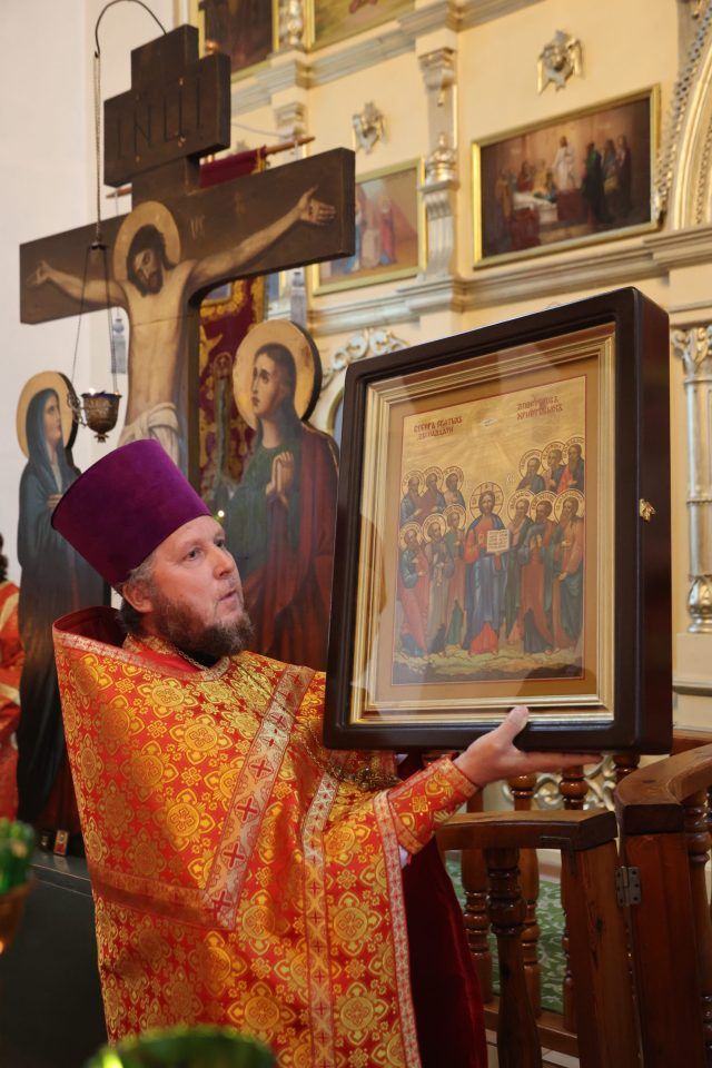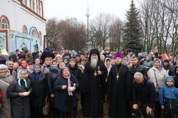 Епископ Феофан напомнил, что в этот день храму великомученика Димитрия Солунского в Новых Паратах исполняется 165 лет, поблагодарил настоятеля храма протоиерея Евгения Бакутова за усердное служение и преподнес в дар храму икону «Собор двенадцати апостолов», написанную в г. Тамбове.