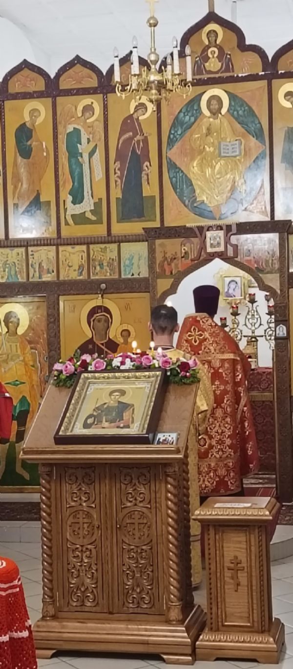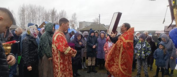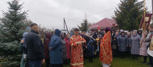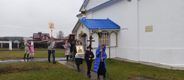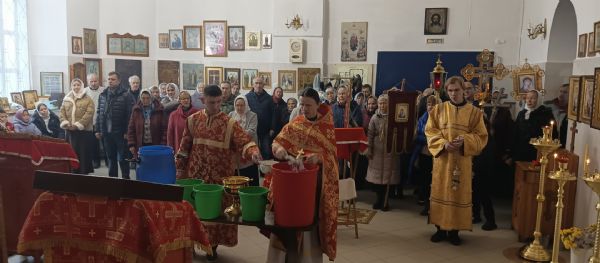 После Литургии состоялся водосвятный молебен и прошел крестный ход вокруг храма со чтением Евангелия и кроплением святой водой. По возвращении в храм было совершено славление перед иконой великомученика Димитрия Солунского, и отец Василий обратился к верующим с напутственным словом.