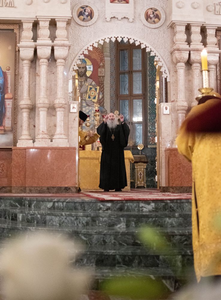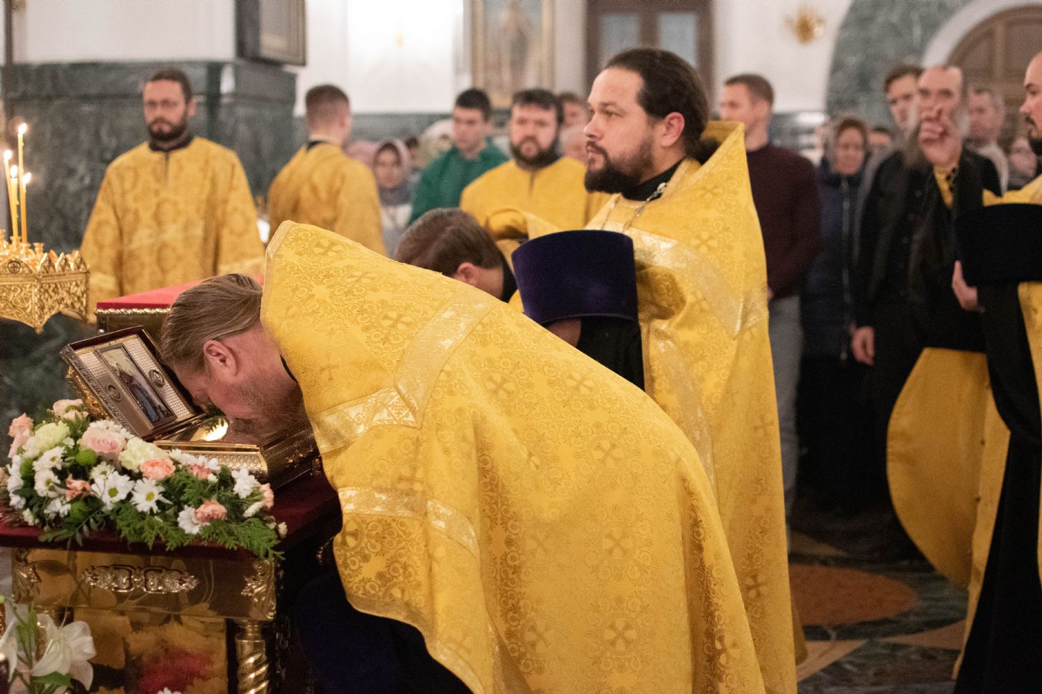 Владыке сослужили ключарь собора протоиерей Сергий Поглазов, клирики собора клирики собора иереи Никифор Захаров, Евгений Самойлов, Александр Староверов, Иоанн Милютин, диаконы Андрей Дружинин и Артемий Бобоч. Песнопения исполняли старший и младший составы архиерейского детско-юношеского хора «Благовест» под управлением регентов Татьяны Черновой и Надежды Поздеевой.