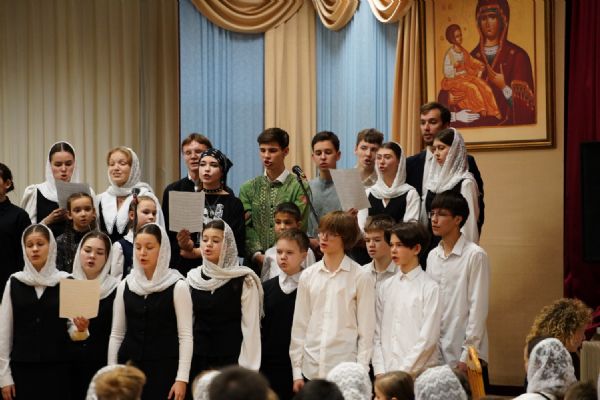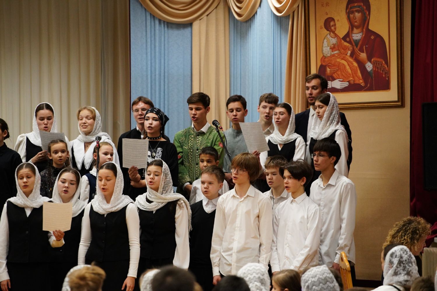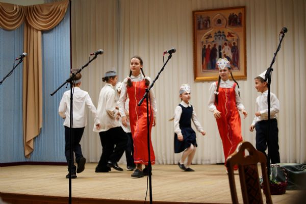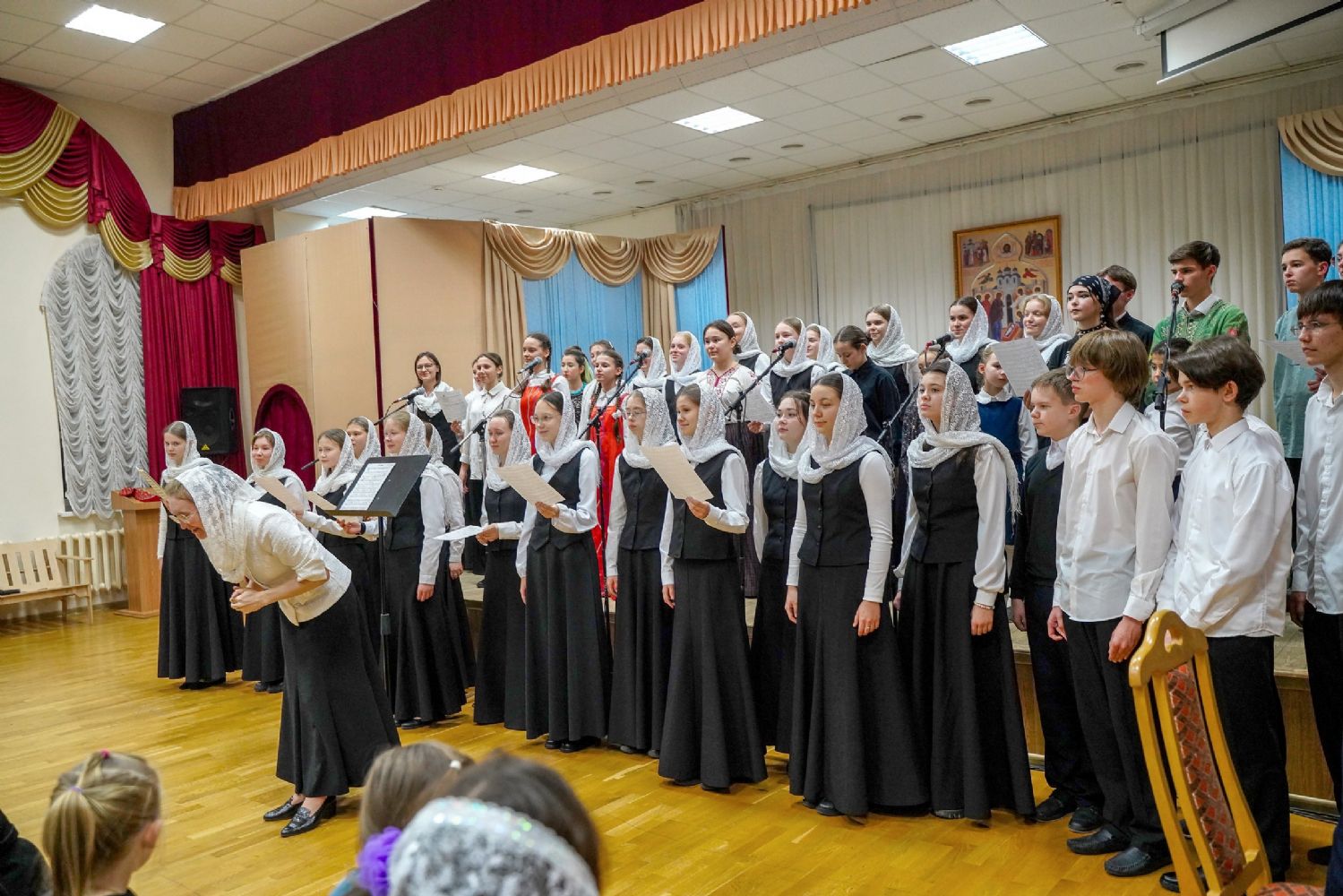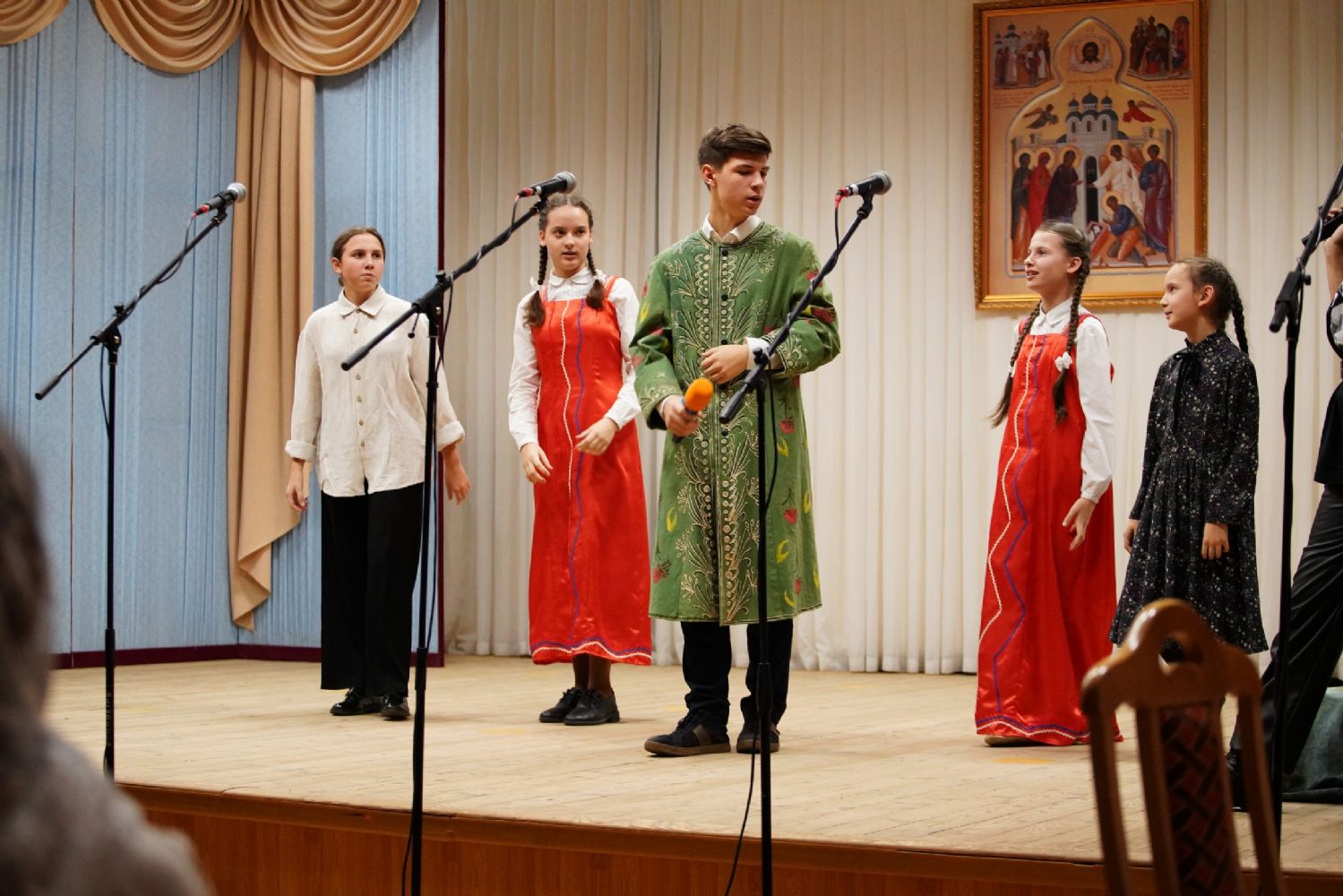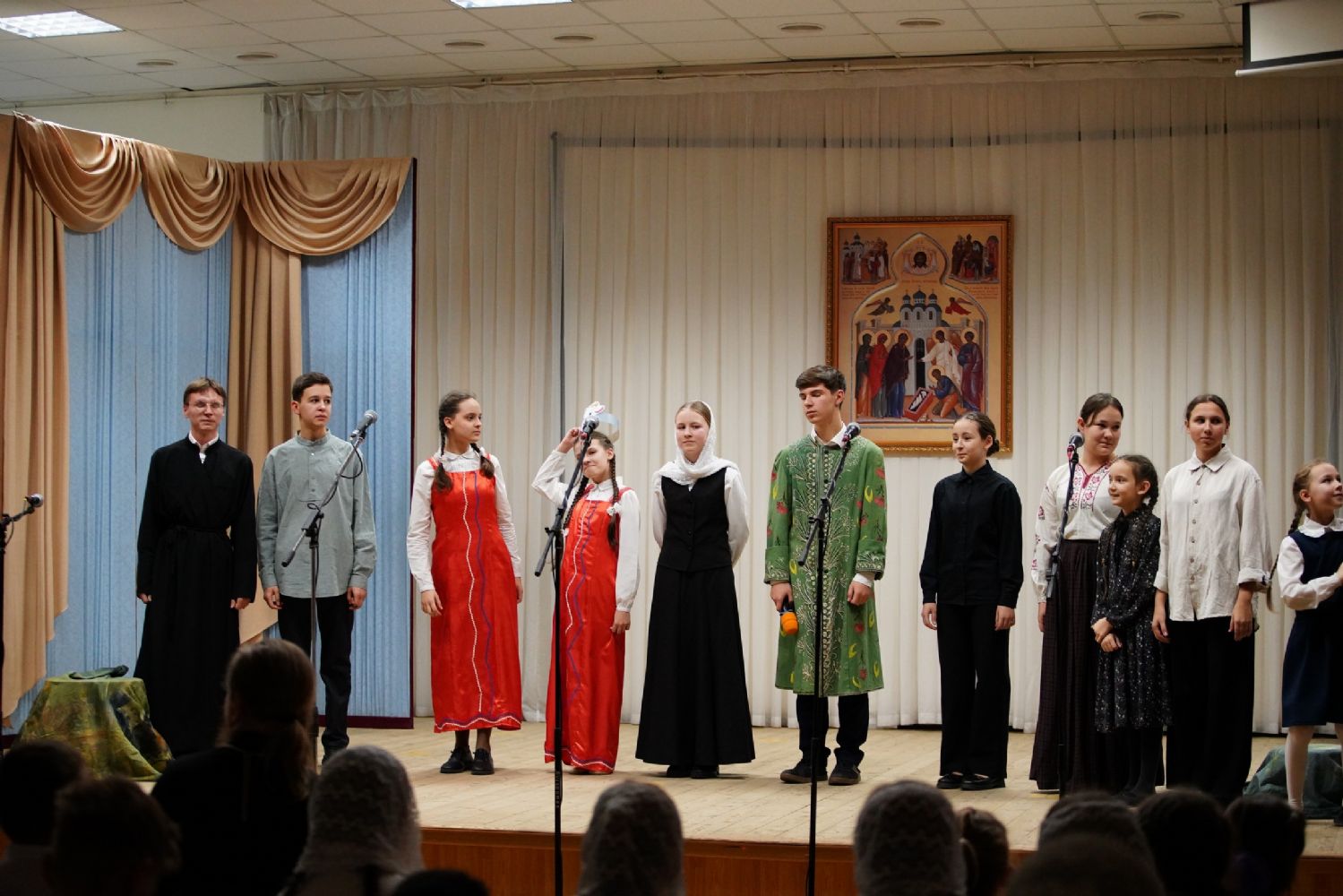 В рамках праздничного концерта прозвучали богослужебные песнопения и духовные канты в исполнении старших и младших певчих «Благовеста» под управлением регентов Татьяны Черновой и Надежды Поздеевой, а также мужского состава хора под управлением Сергея Мамадалиева. В завершение ребята показали поучительный сказочный спектакль «Царь Светозар» о том, что благополучие и счастье страны зависит не от шальных денег, а от духовного богатства ее жителей.