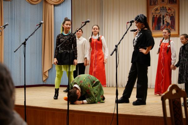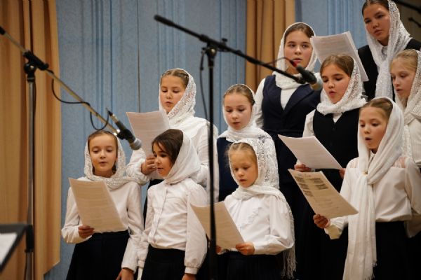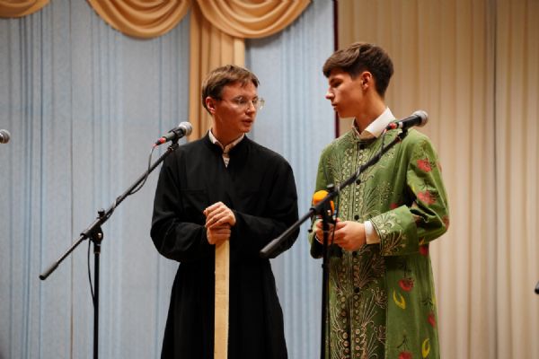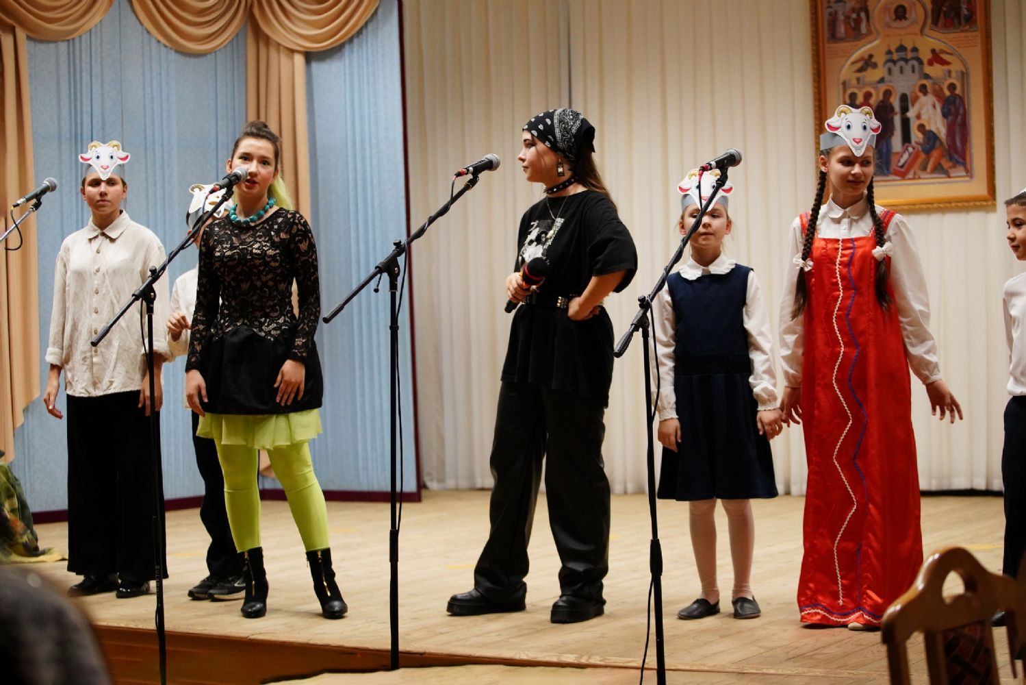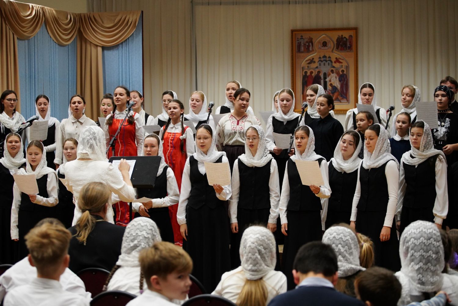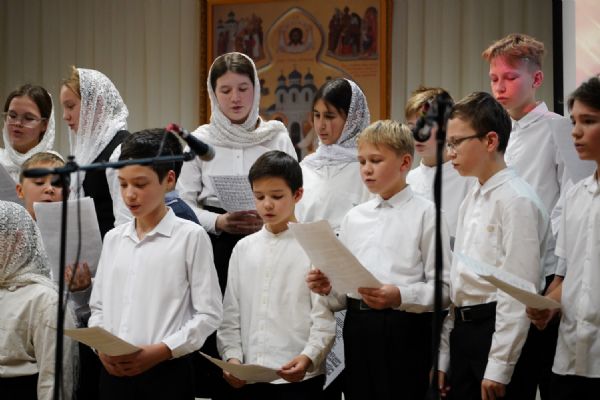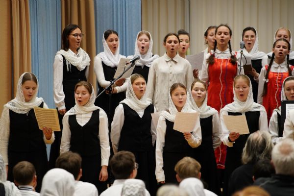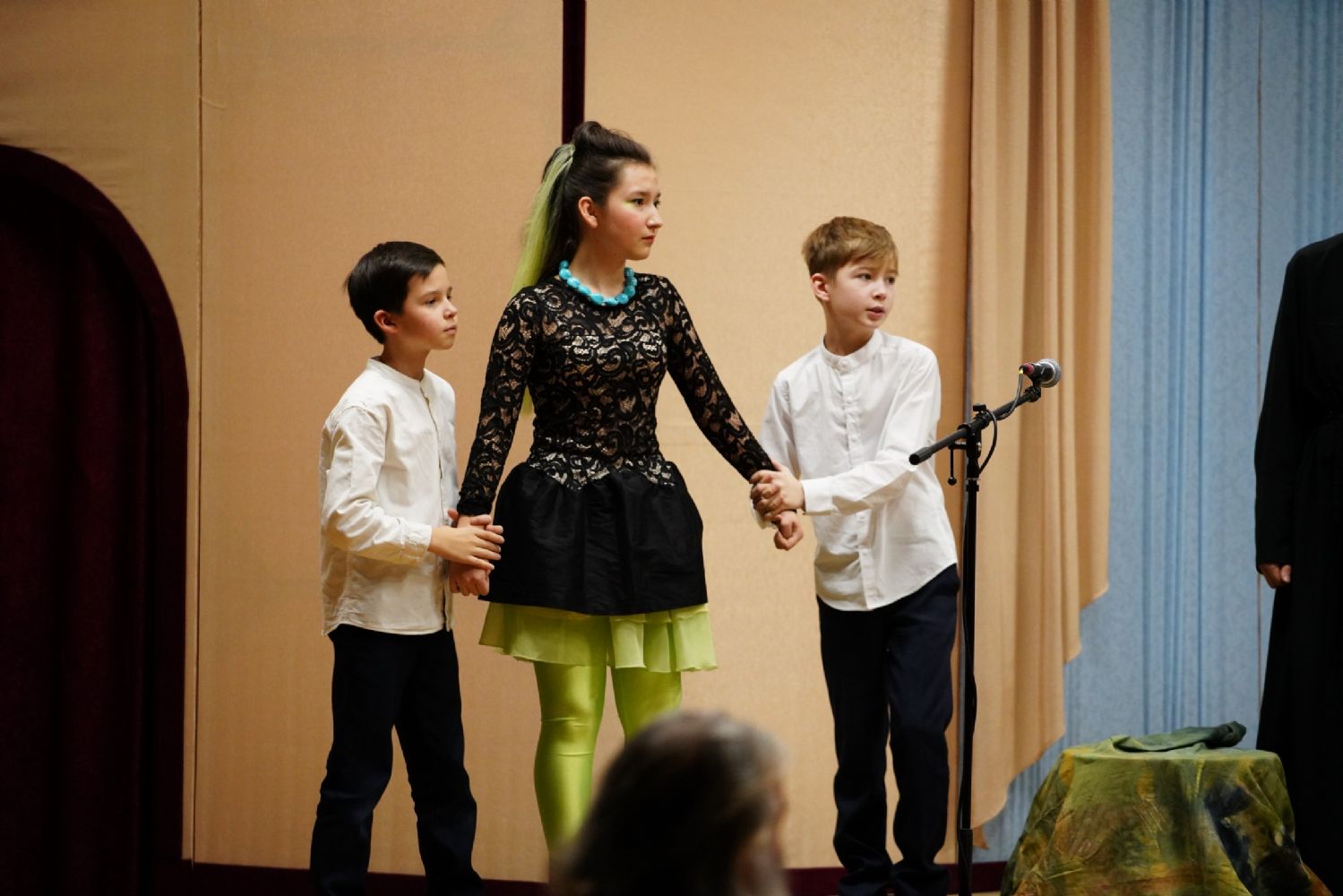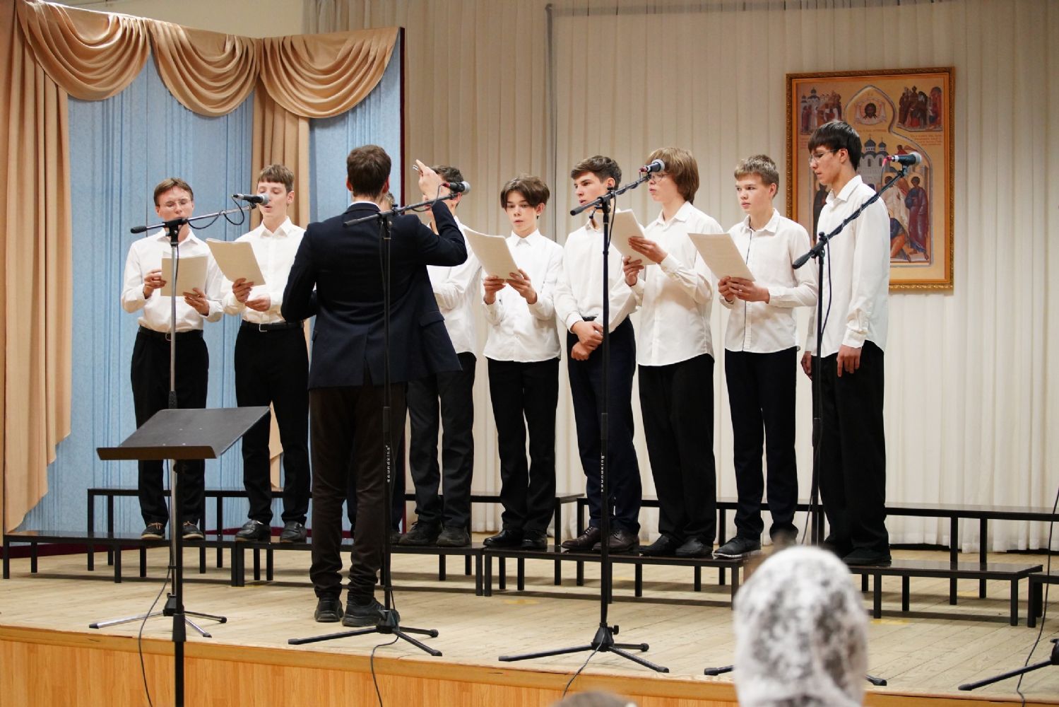 В рамках праздничного концерта прозвучали богослужебные песнопения и духовные канты в исполнении старших и младших певчих «Благовеста» под управлением регентов Татьяны Черновой и Надежды Поздеевой, а также мужского состава хора под управлением Сергея Мамадалиева. В завершение ребята показали поучительный сказочный спектакль «Царь Светозар» о том, что благополучие и счастье страны зависит не от шальных денег, а от духовного богатства ее жителей.