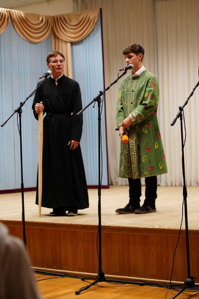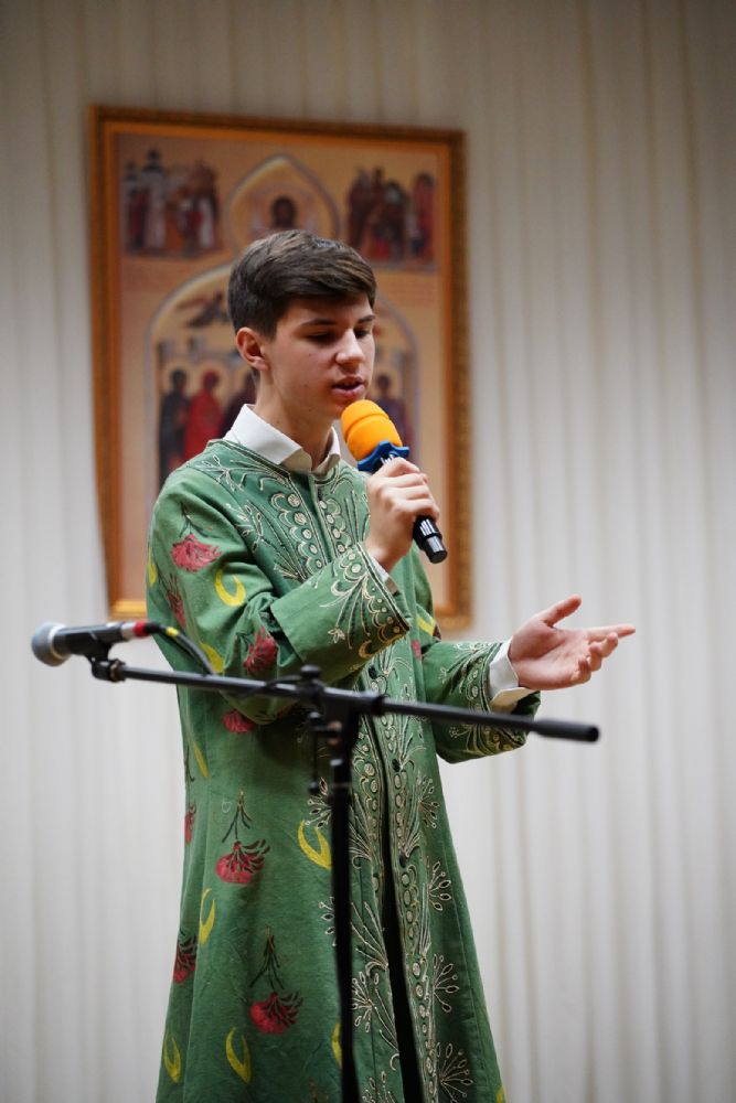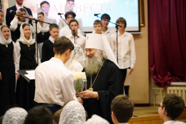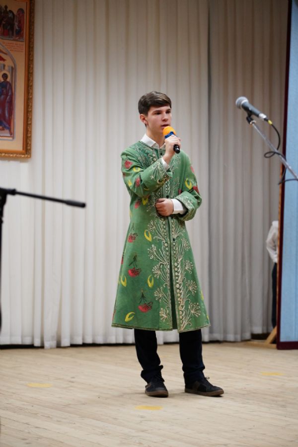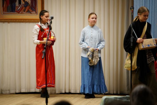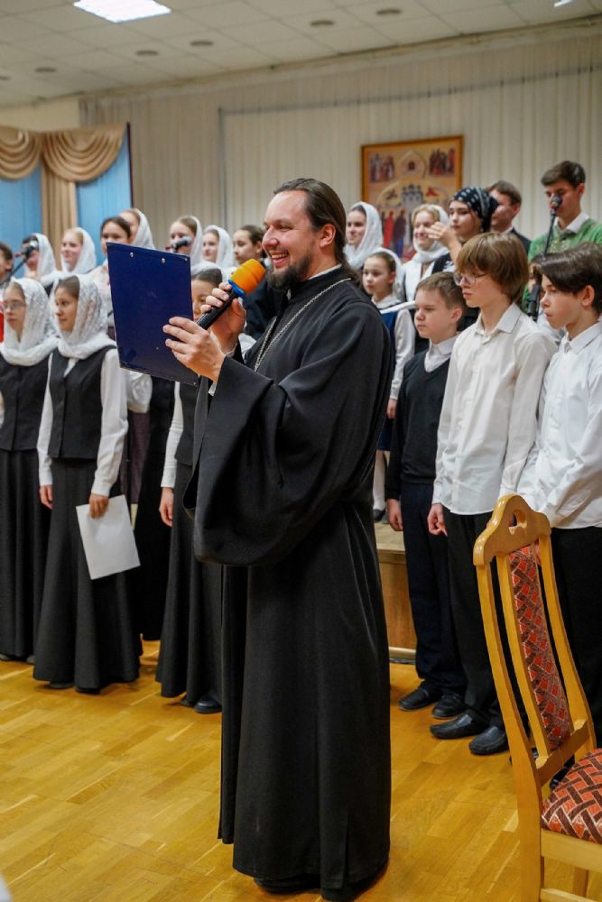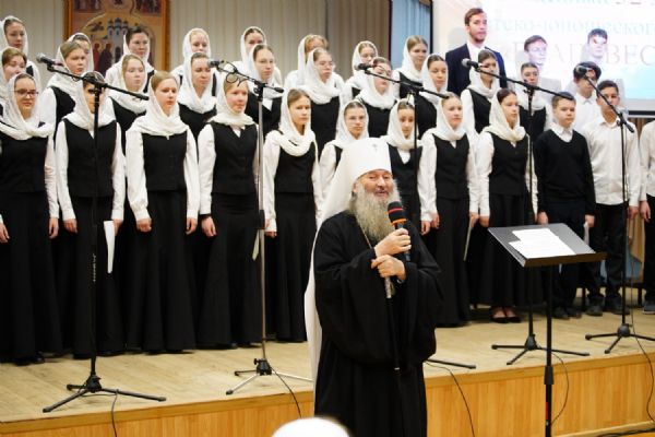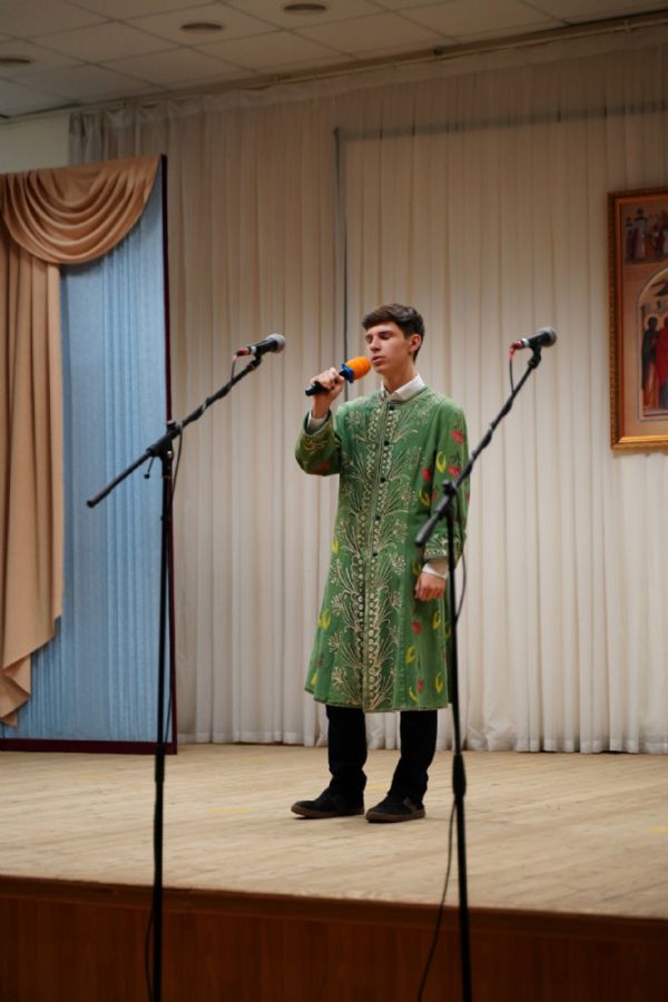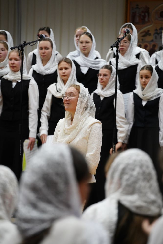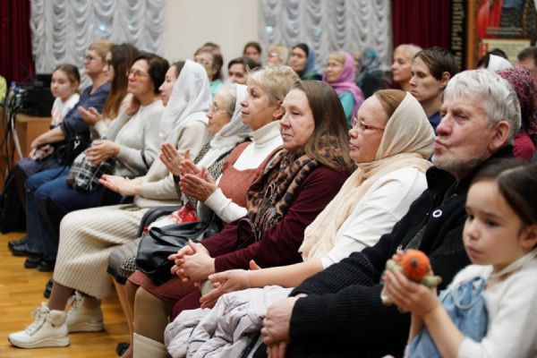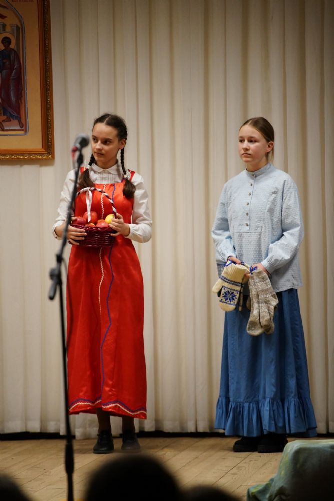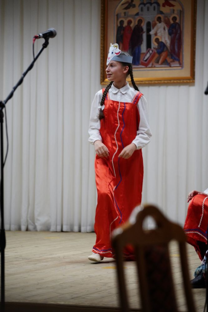 В рамках праздничного концерта прозвучали богослужебные песнопения и духовные канты в исполнении старших и младших певчих «Благовеста» под управлением регентов Татьяны Черновой и Надежды Поздеевой, а также мужского состава хора под управлением Сергея Мамадалиева. В завершение ребята показали поучительный сказочный спектакль «Царь Светозар» о том, что благополучие и счастье страны зависит не от шальных денег, а от духовного богатства ее жителей.