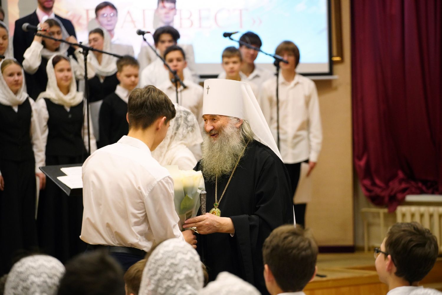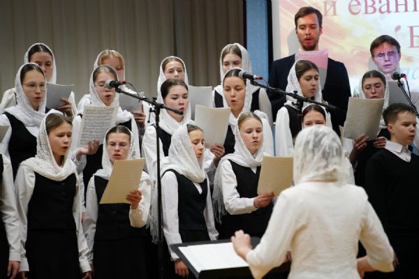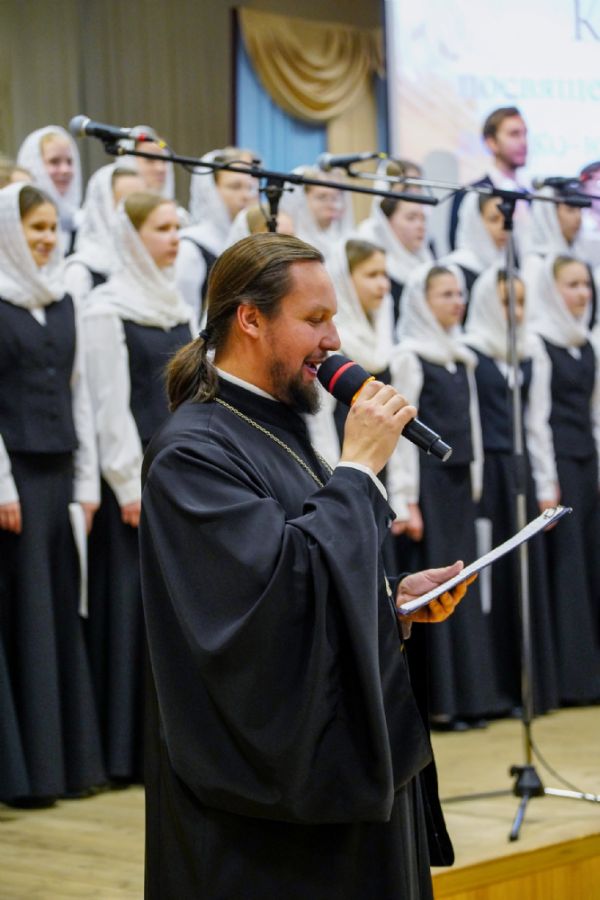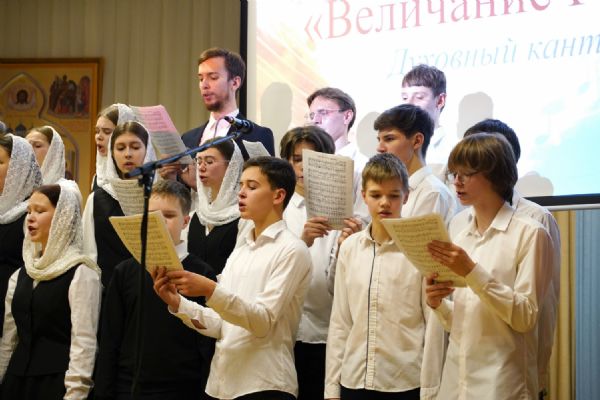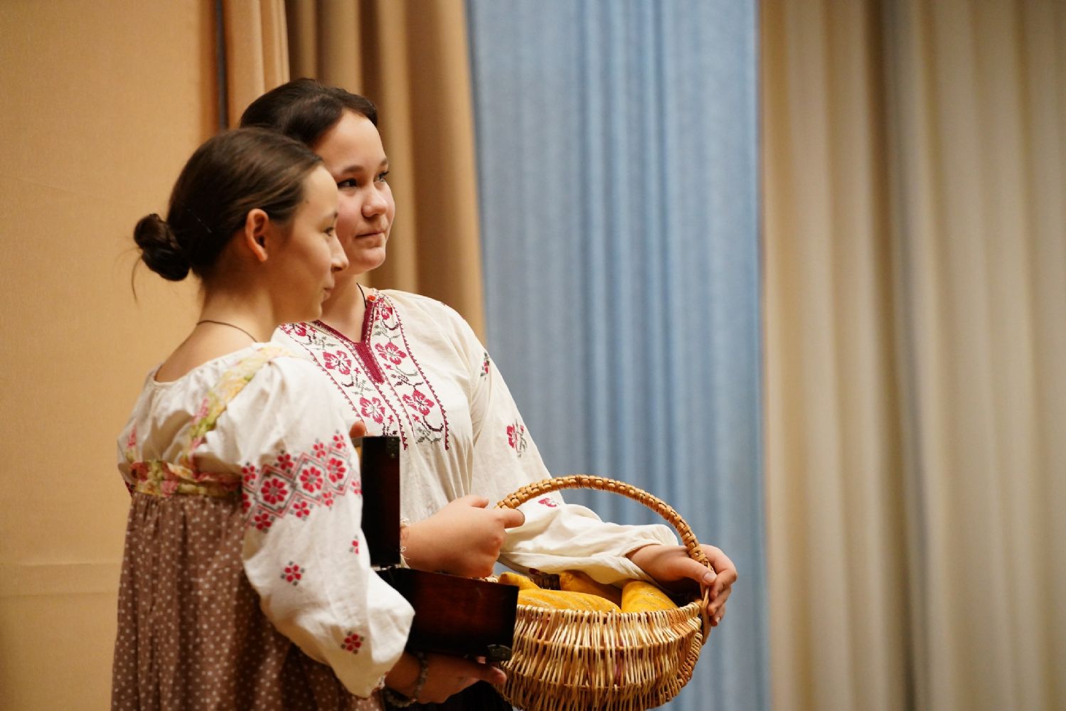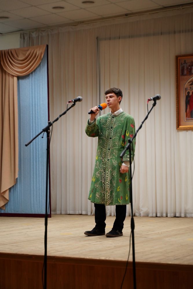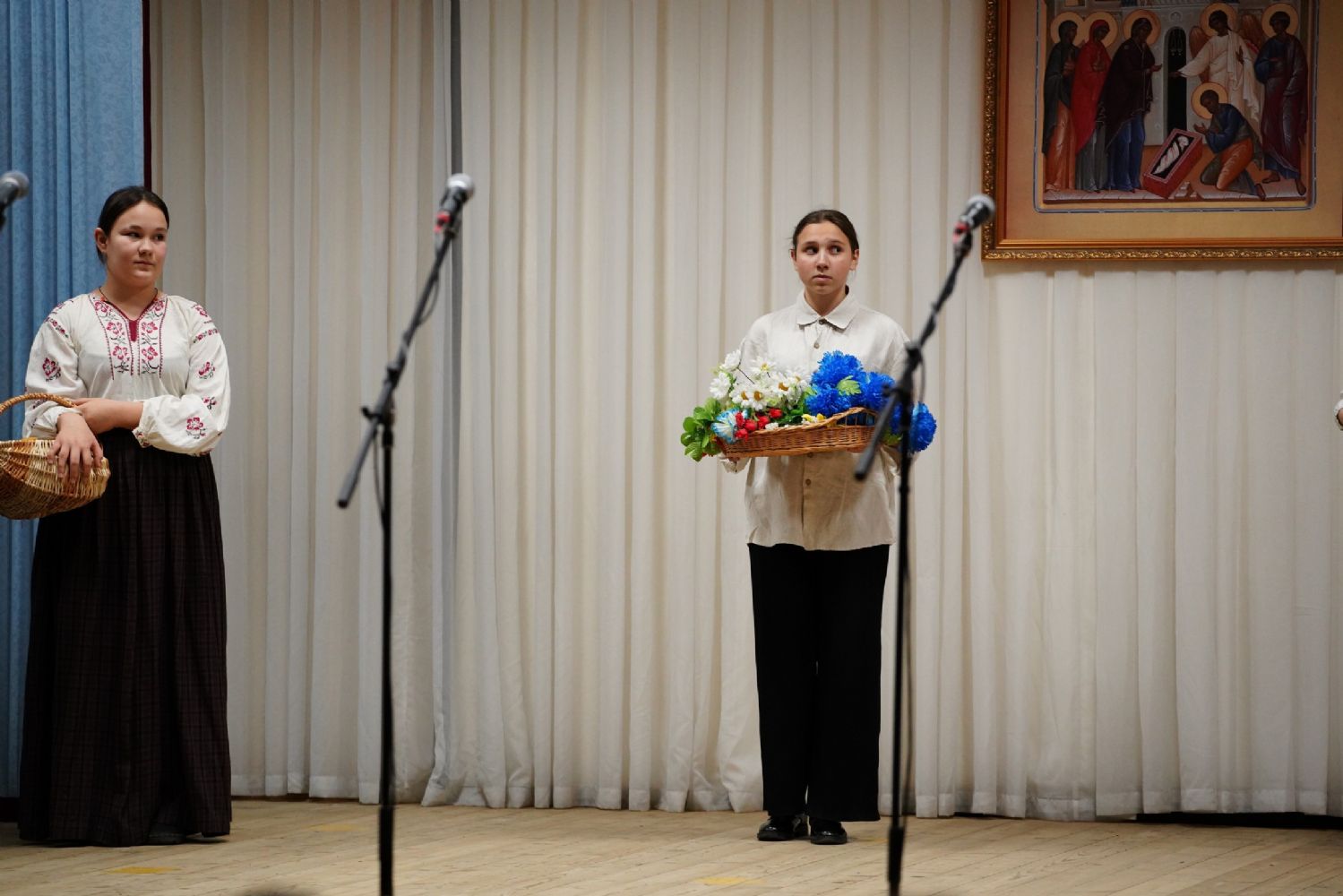 В рамках праздничного концерта прозвучали богослужебные песнопения и духовные канты в исполнении старших и младших певчих «Благовеста» под управлением регентов Татьяны Черновой и Надежды Поздеевой, а также мужского состава хора под управлением Сергея Мамадалиева. В завершение ребята показали поучительный сказочный спектакль «Царь Светозар» о том, что благополучие и счастье страны зависит не от шальных денег, а от духовного богатства ее жителей.