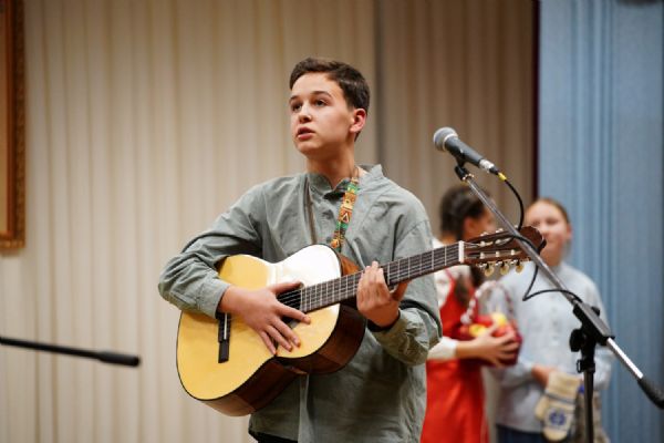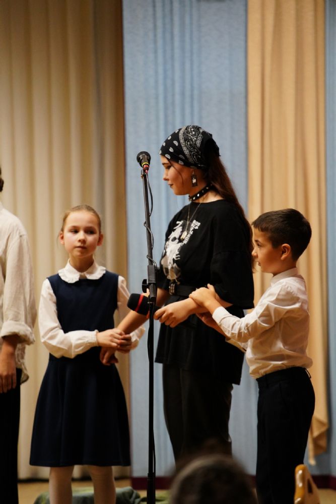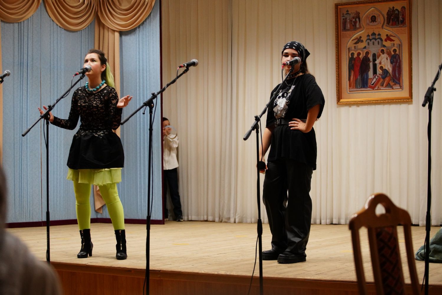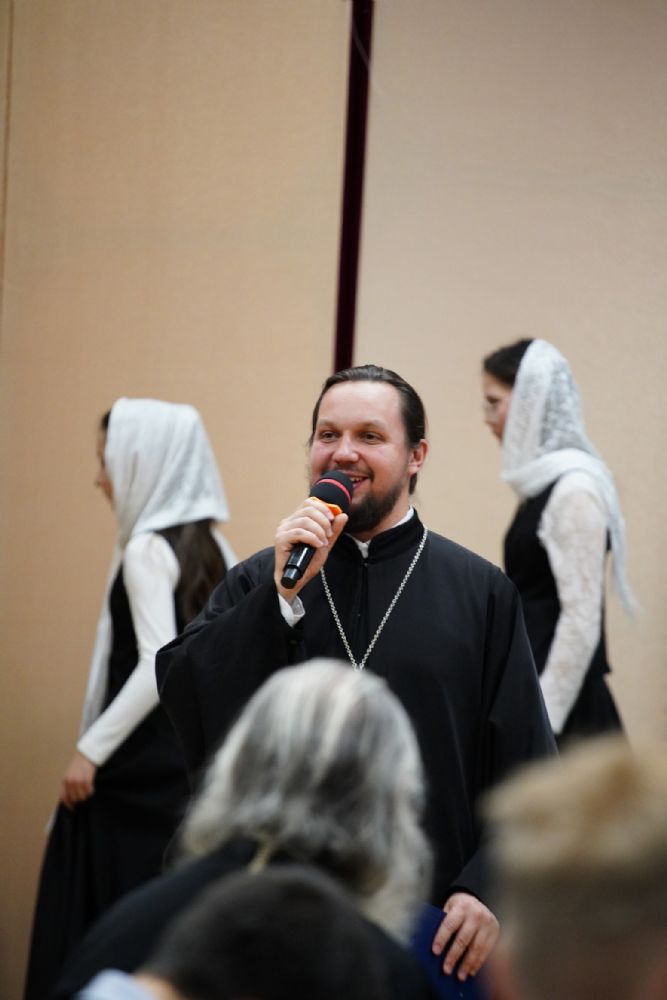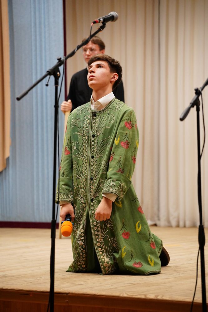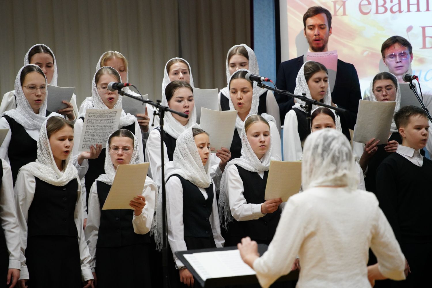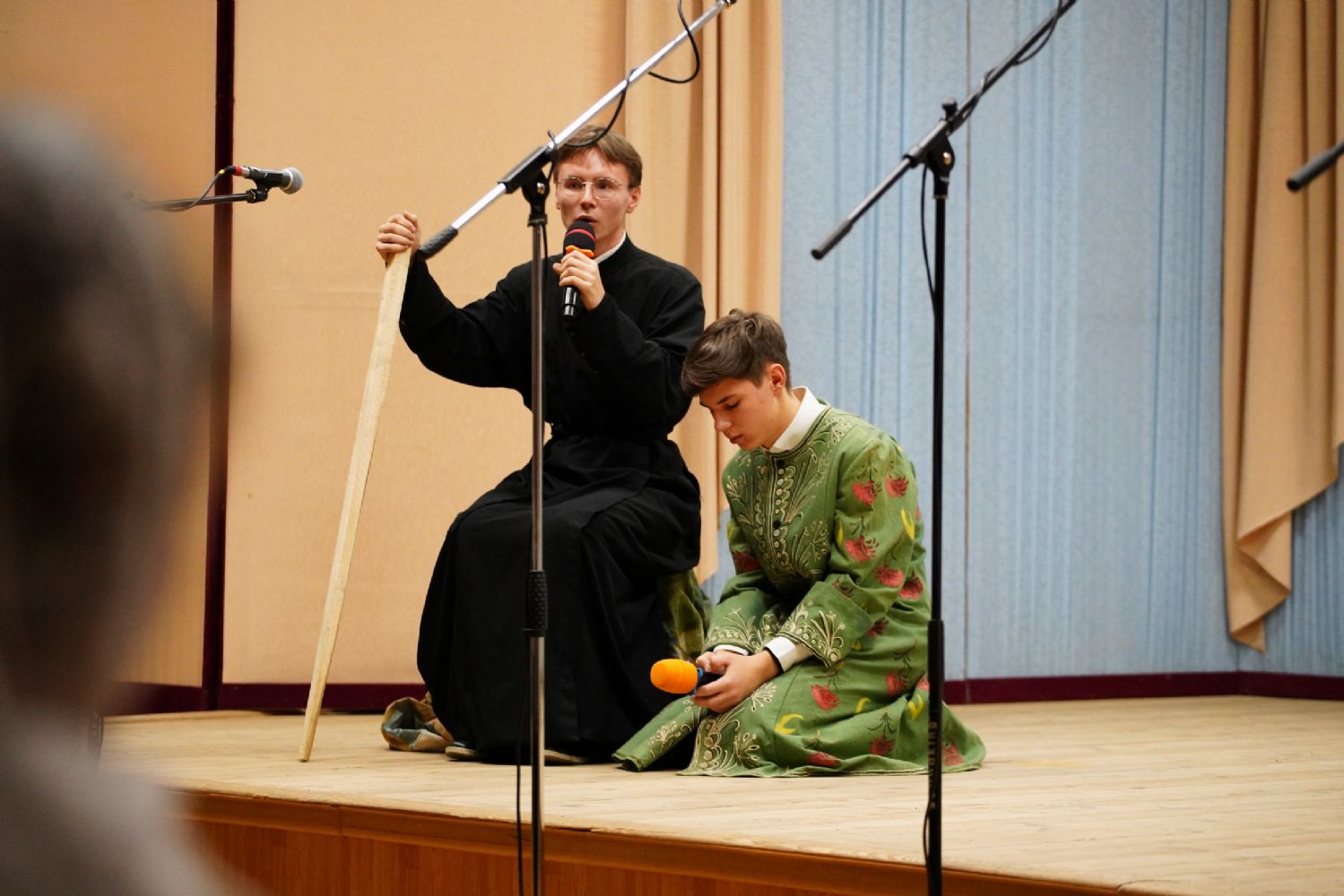 В рамках праздничного концерта прозвучали богослужебные песнопения и духовные канты в исполнении старших и младших певчих «Благовеста» под управлением регентов Татьяны Черновой и Надежды Поздеевой, а также мужского состава хора под управлением Сергея Мамадалиева. В завершение ребята показали поучительный сказочный спектакль «Царь Светозар» о том, что благополучие и счастье страны зависит не от шальных денег, а от духовного богатства ее жителей.