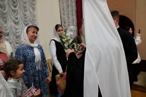 Завершился праздник теплым общением за чашкой чая с традиционным «капустником», в ходе которого митрополит Иоанн вручил подарки выпускникам хора и музыкальным руководителям.